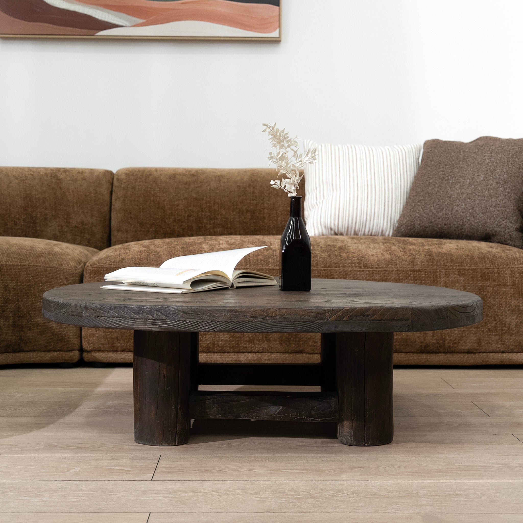 Freeman 100cm Elm Round Coffee Table - Dark Brown