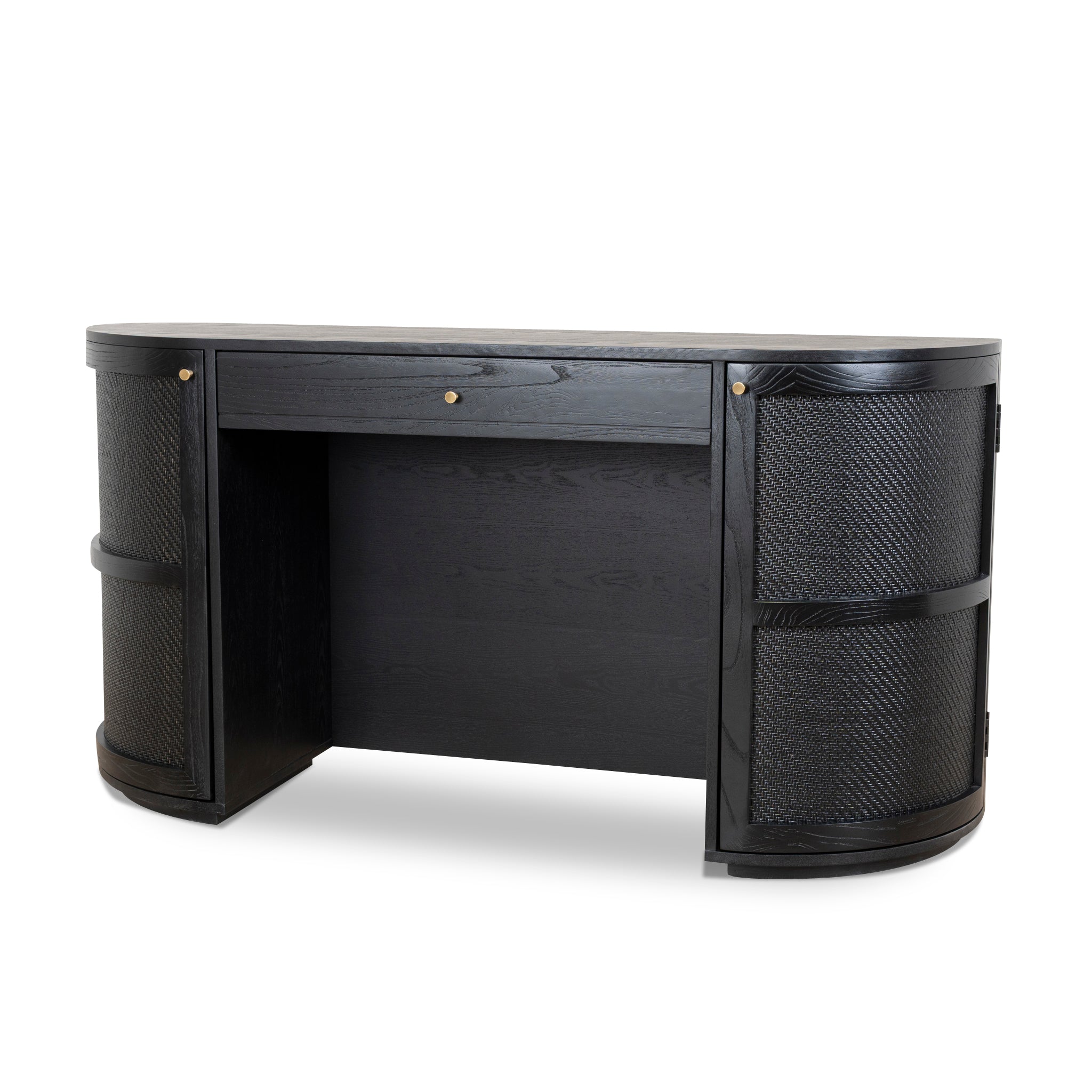 Verso 1.55m Rattan Home Office Desk - Full Black