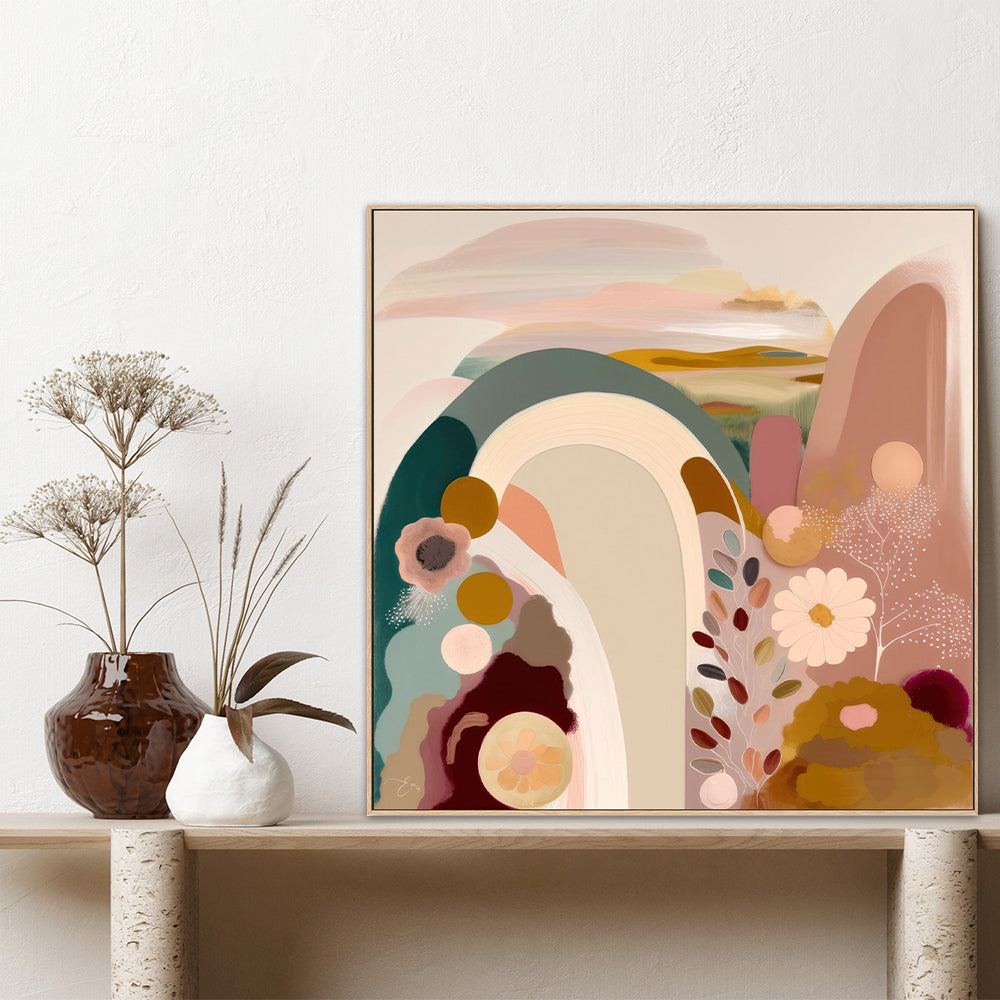 Beyond, Style A, By Dan Hobday Wall Art Gioia-Local 50x50cm Framed Canvas Oak