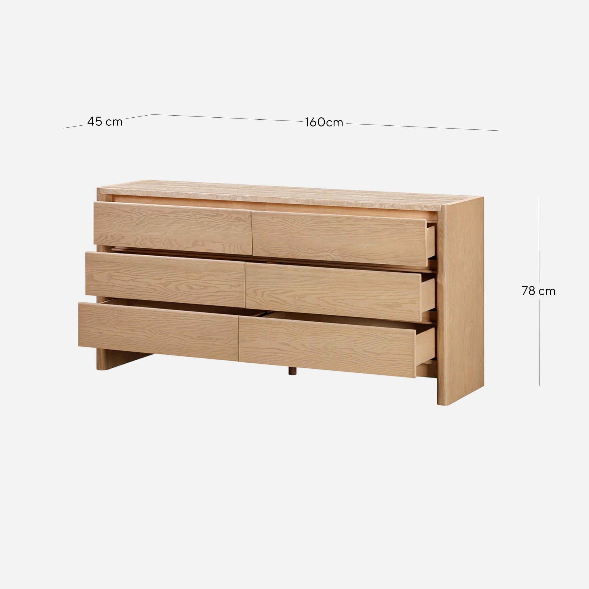 Linden 1.6m Travertine Chest of Drawers - Creme Ash