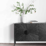 - Geometric wood pattern on buffet body creates the appearance of rays