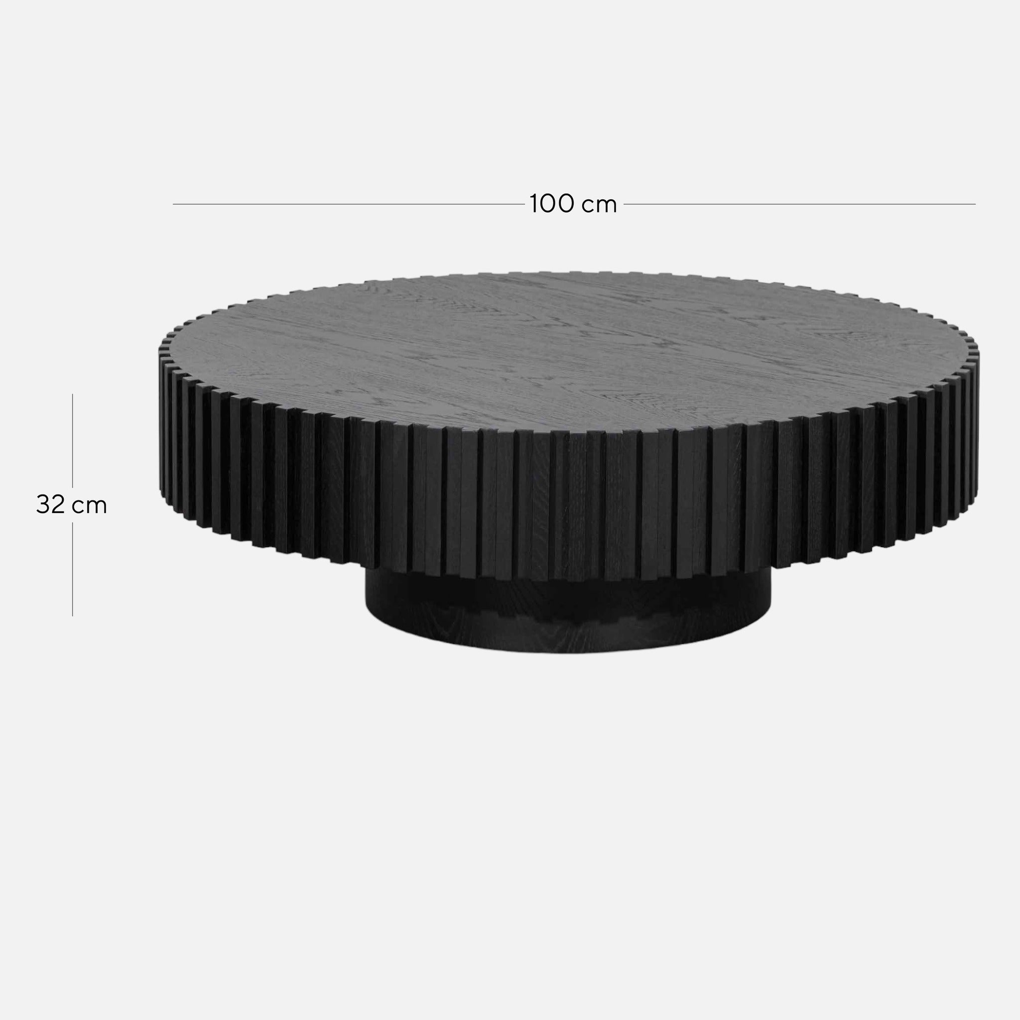 Add an admirable edge to your lounge room display with the subtle curves of Alfaro Oak Round Coffee Table - Black and its monochromatic palette. The spherical base suspends its reeded wood tabletop for a unique and geometric appeal. Check out our wide range of coffee tables here.