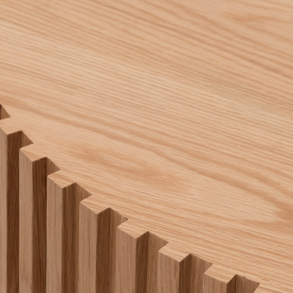 - Reeded wood design with deep wood textures throughout