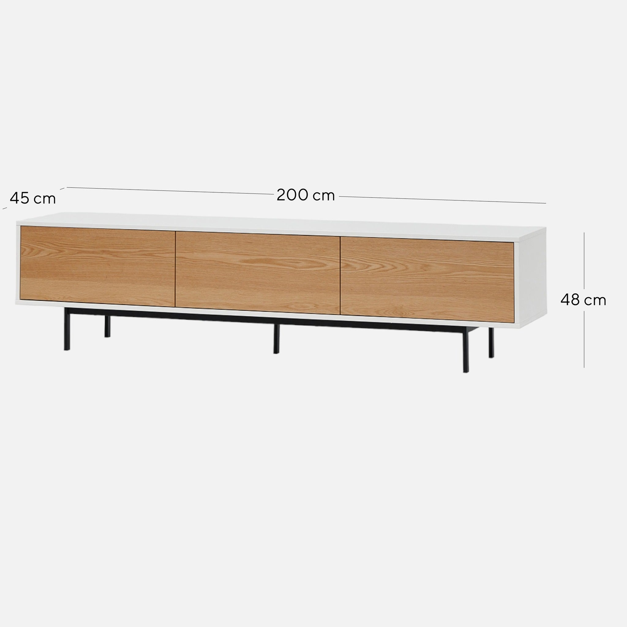 Alto 2m Wooden TV Entertainment Unit With Natural Drawers - White Frame