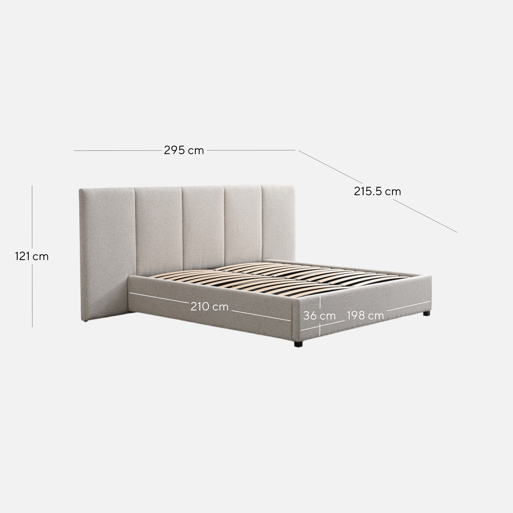 Overall: 295cm (W) x 215.5cm (D) x 121cm (H) Bedhead: 295cm (W) x 10cm (D) x 121cm (H) Bedside Frame: 210cm (W) x 6cm (D) x 36cm (H) Footboard: 198cm (W) x 6cm (D) x 36cm (H) Leg Height: 5cm (H)