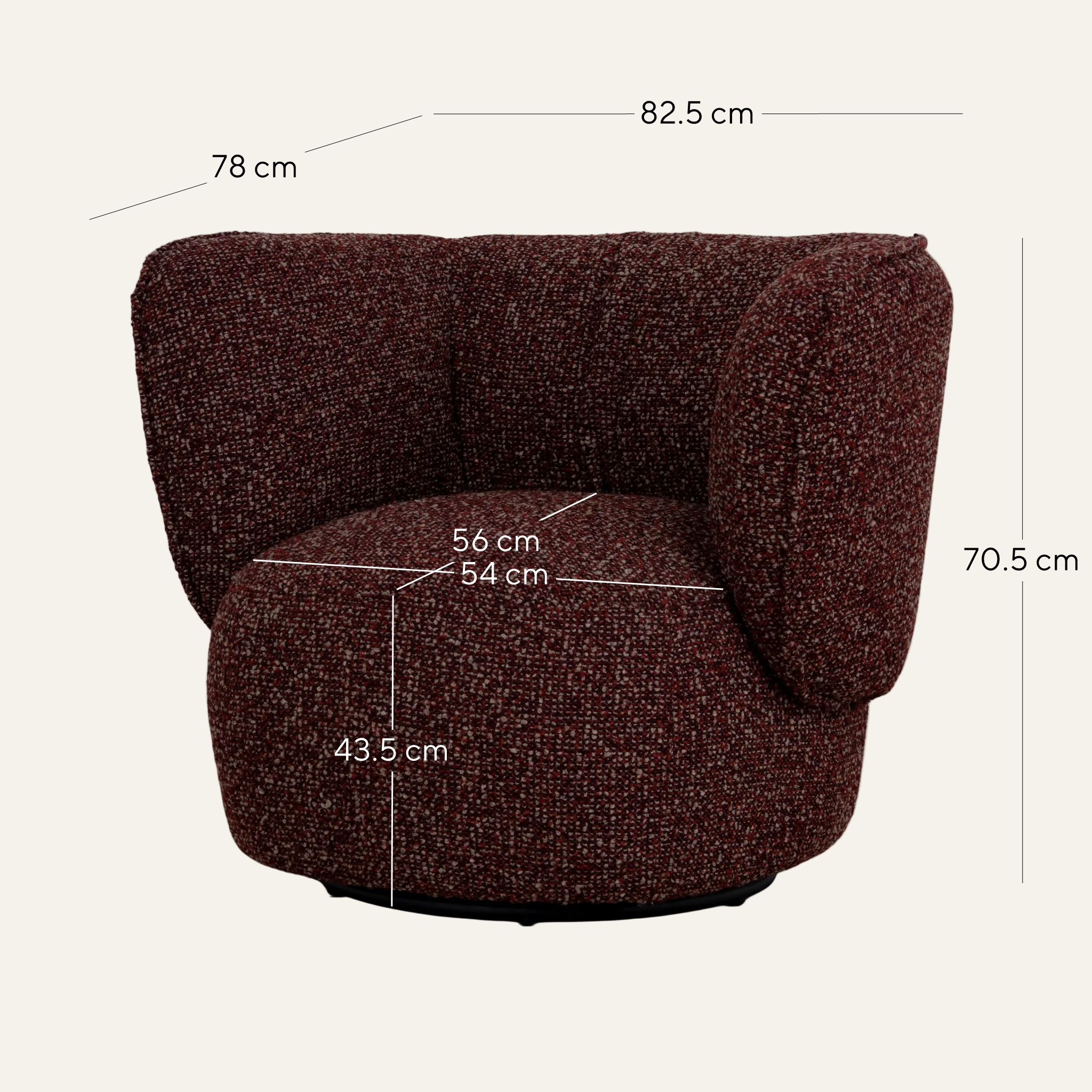 Introducing a sophisticated, textural accent to contemporary living spaces, The Amara Swivel Armchair in Autumn Red pairs sculpted curves with a supportive silhouette, bringing visual softness and confident form to lounges, bedrooms, or reading corners.