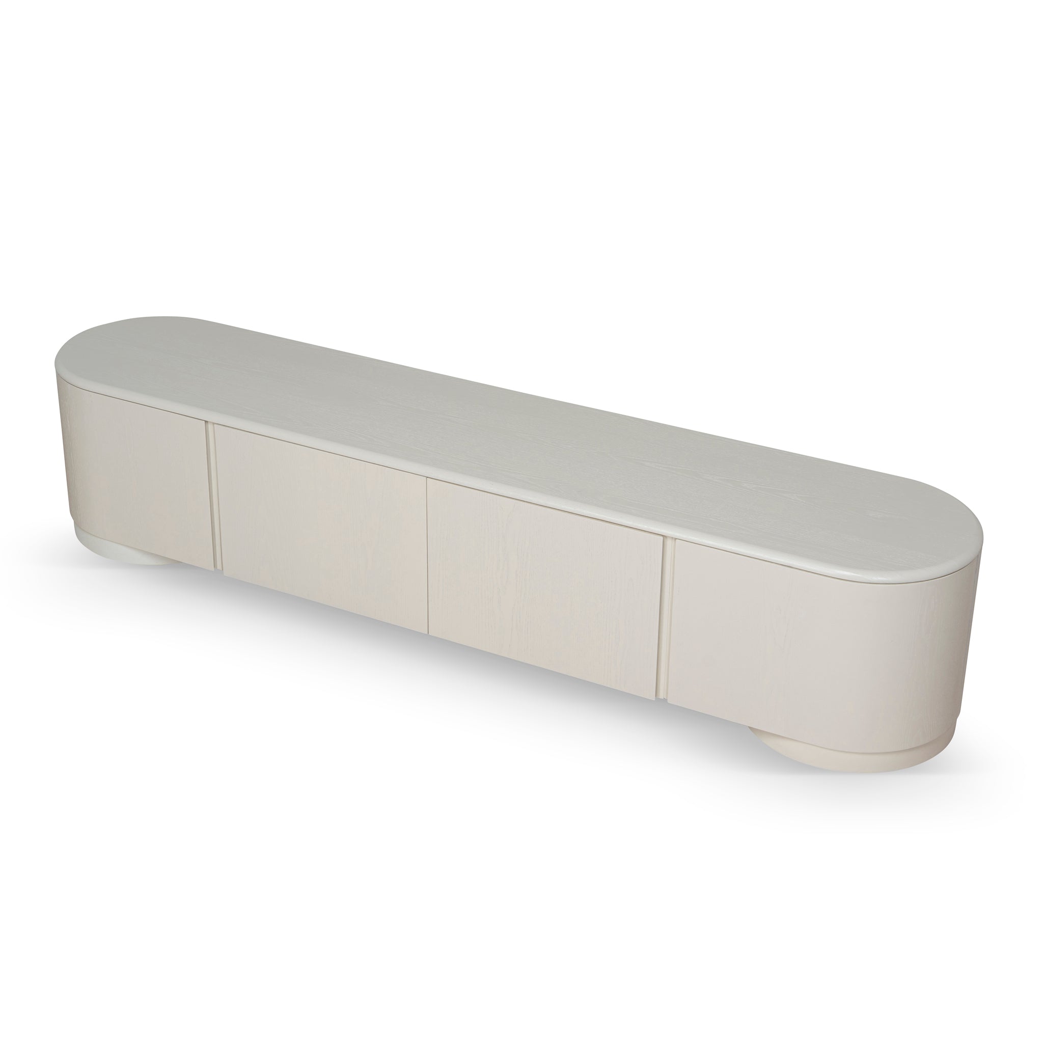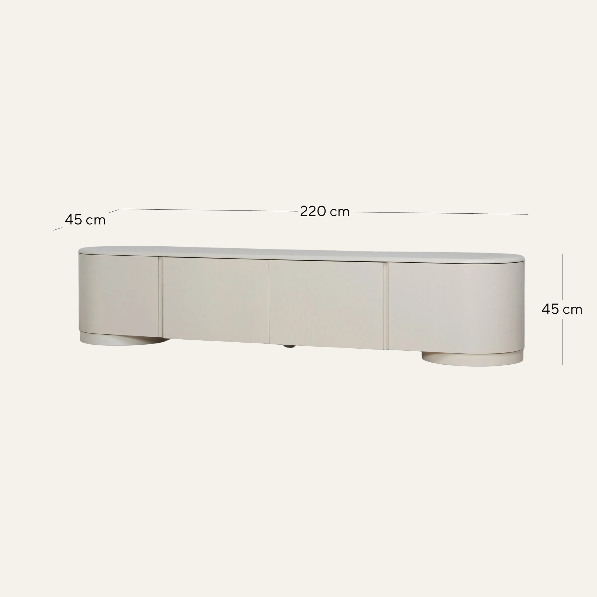 Bringing a soft, sculptural presence to the living space, The Anja 2.2m TV Entertainment Unit in Ivory Oat features an elongated silhouette with gently rounded ends. Its light, airy tone complements modern, minimalist, and contemporary interiors with effortless ease.