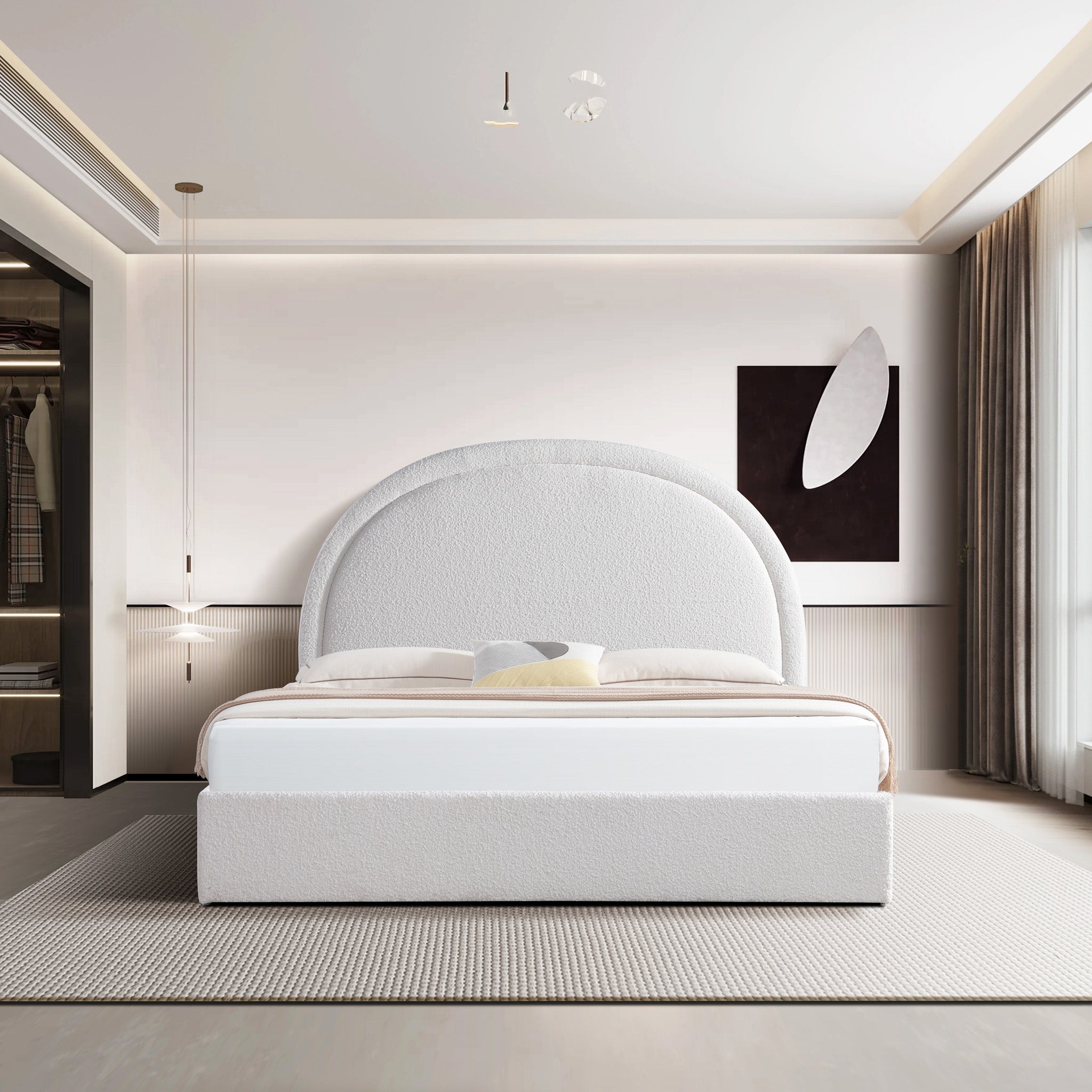 Antoni King Bed Frame - Antique White Boucle with Storage