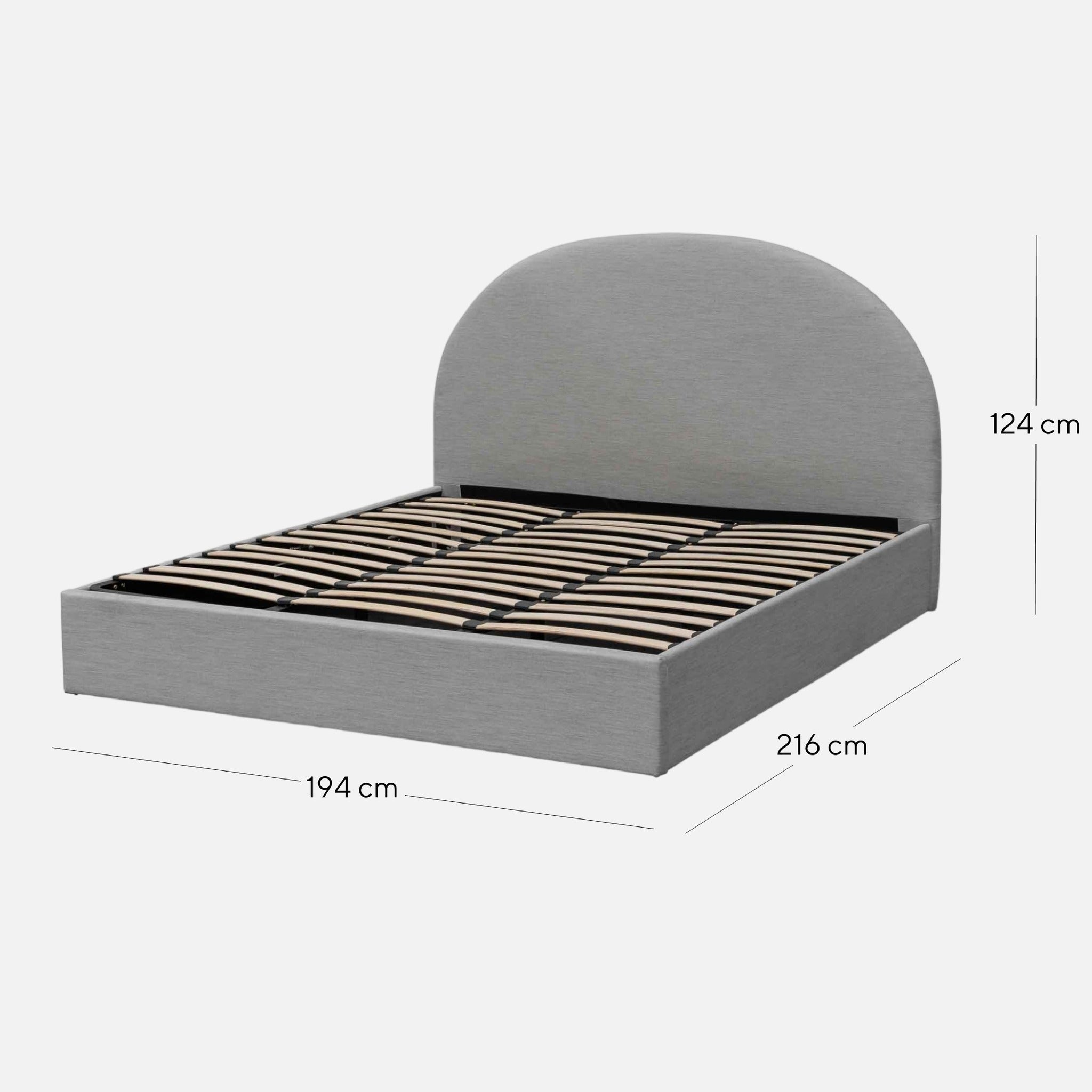 Overall: 191cm (W) x 216cm (D) x 124cm (H) Bed head: 191cm (W) x 10cm (D) x 122cm (H) Sideboard: 205cm (W) x 3cm (D) x 30cm (H) Footboard: 191cm (W) x 5cm (D) x 30cm (H)