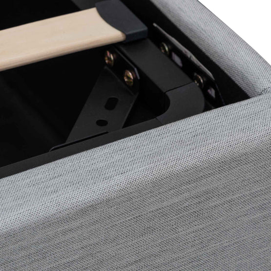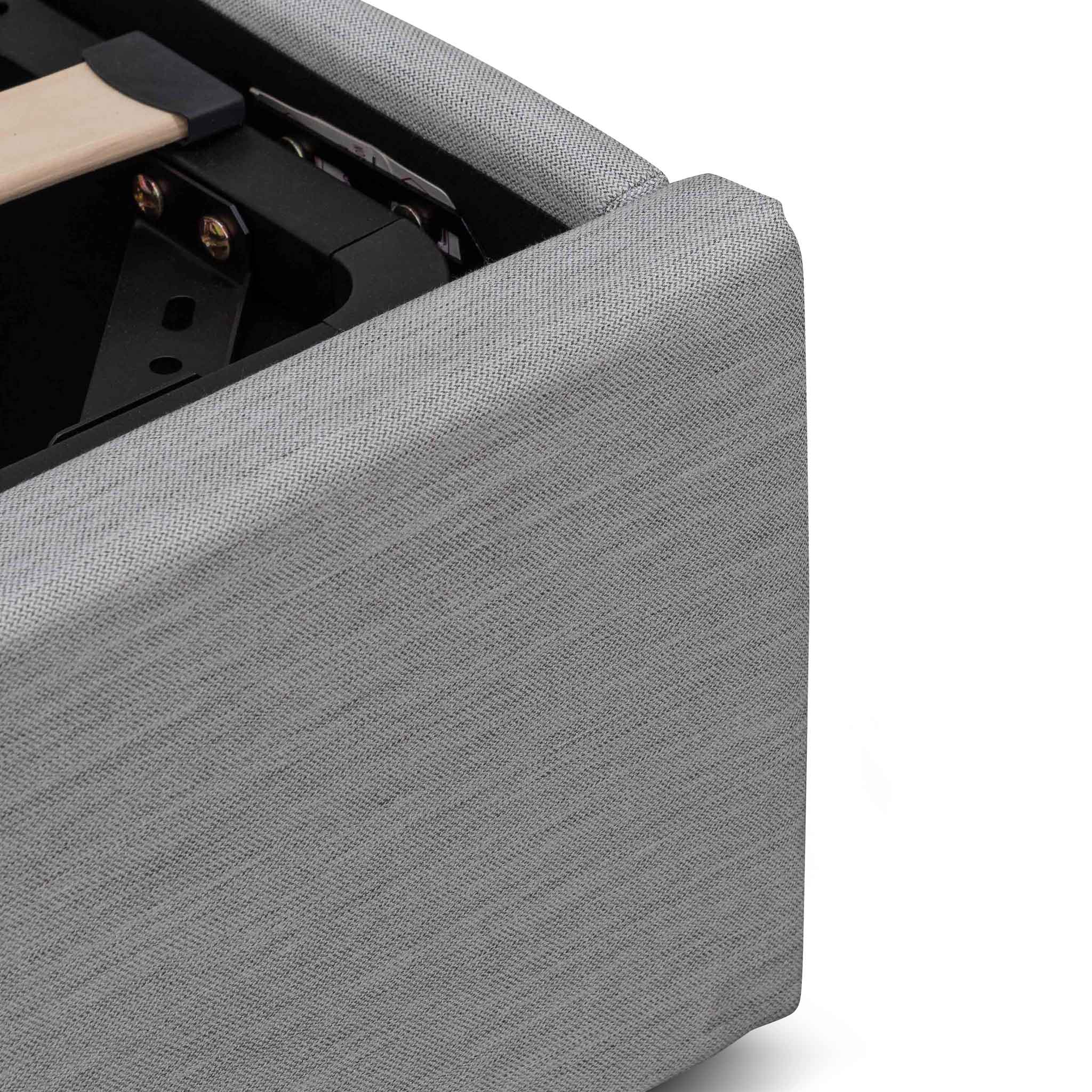 - Upholstered in durable pearl grey fabric