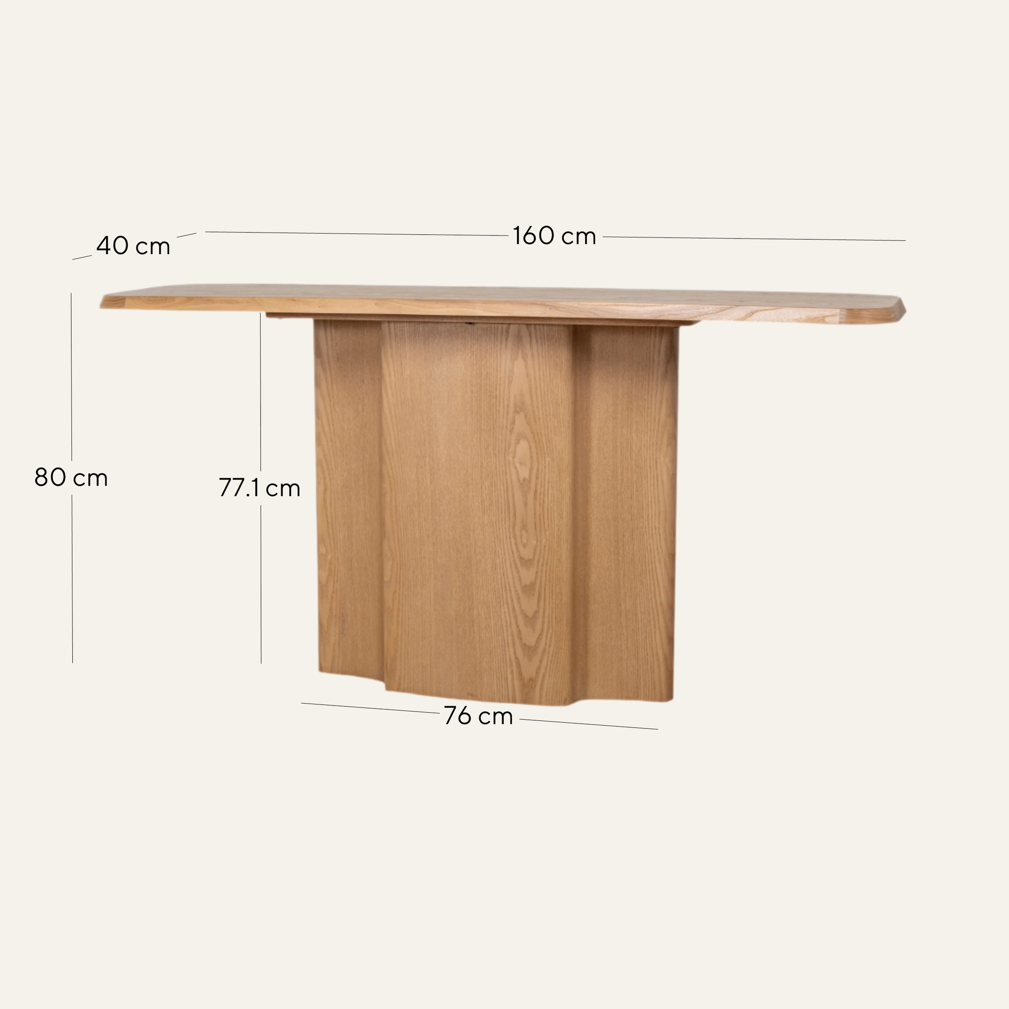 With a focus on enduring style and thoughtful proportions, the Arboris 1.6m Console Table in Natural embodies balance and poise. Its refined finish and timeless aesthetic allow it to harmonize effortlessly within modern or classic interiors, adding functional elegance without overwhelming the room.