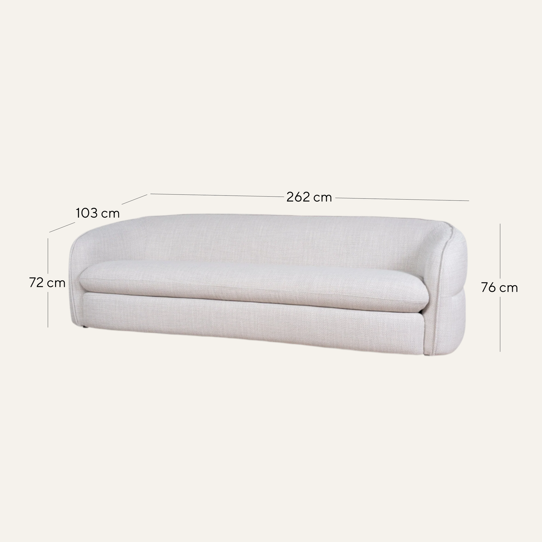 Overall: 262cm (W) x 103cm (D) x 76cm (H) Arm Height: 72cm Leg Height: 3.6cm