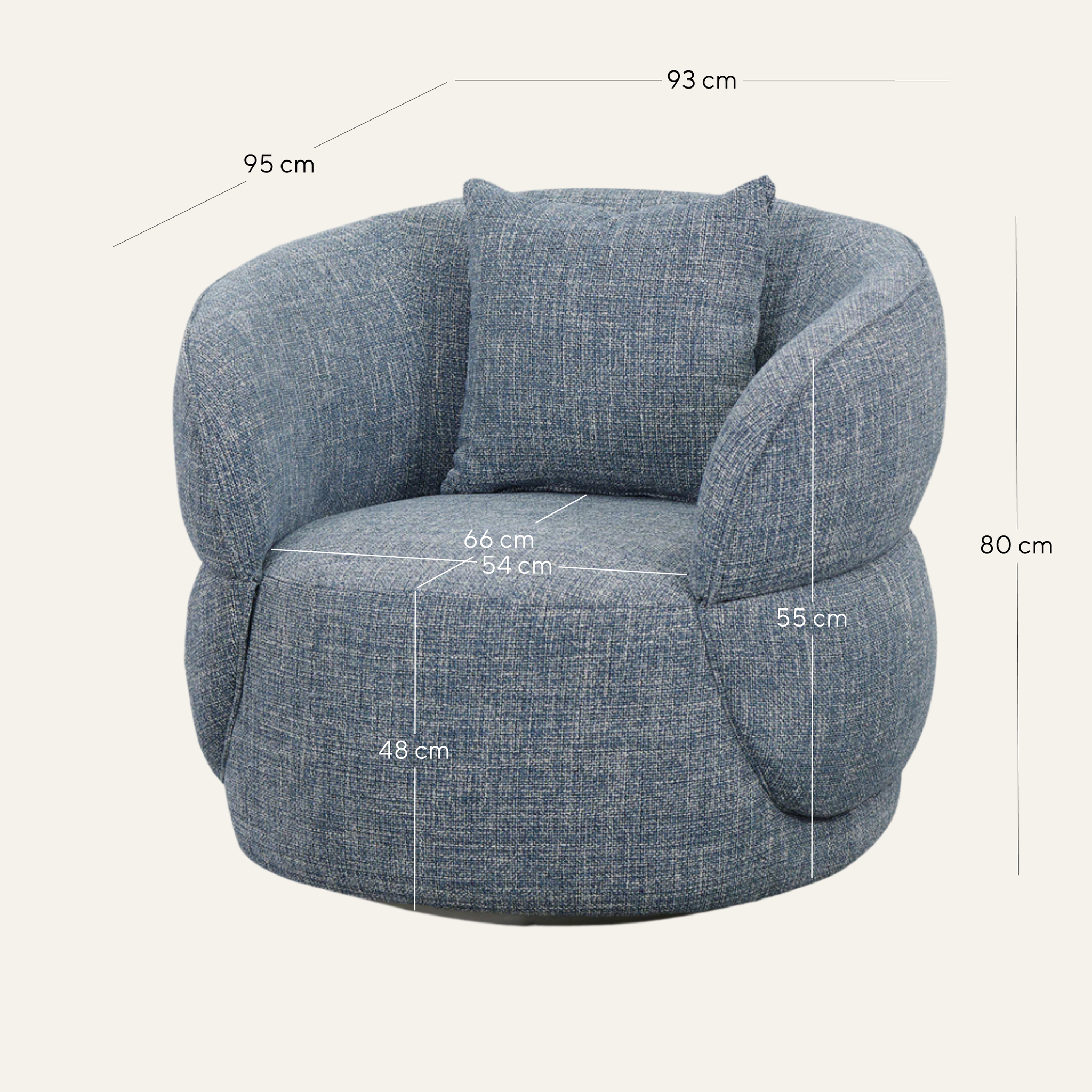 The Moss Blue hue of the Arima Swivel Armchair is a breath of fresh air, infusing a sense of calm and sophistication into any room. It's not just about color; it's about creating an atmosphere of tranquility and refined taste. This unique shade adds a touch of nature's serenity to your surroundings.