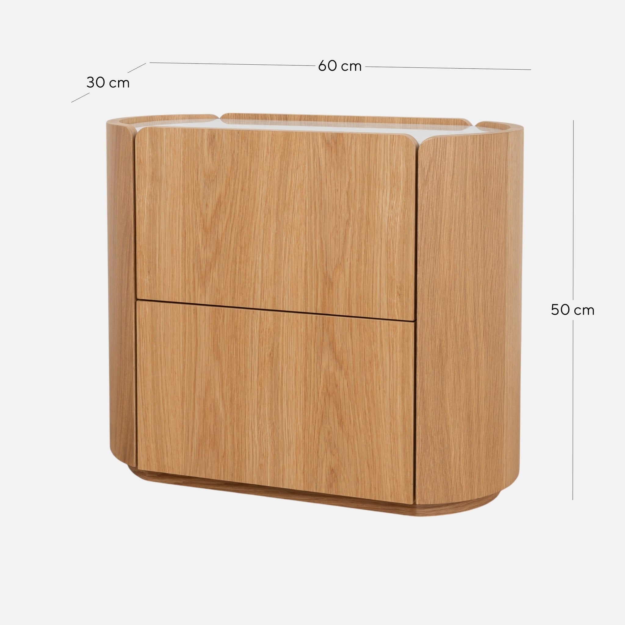 Arnar 60cm Bedside Table - Natural Oak with Marble Top