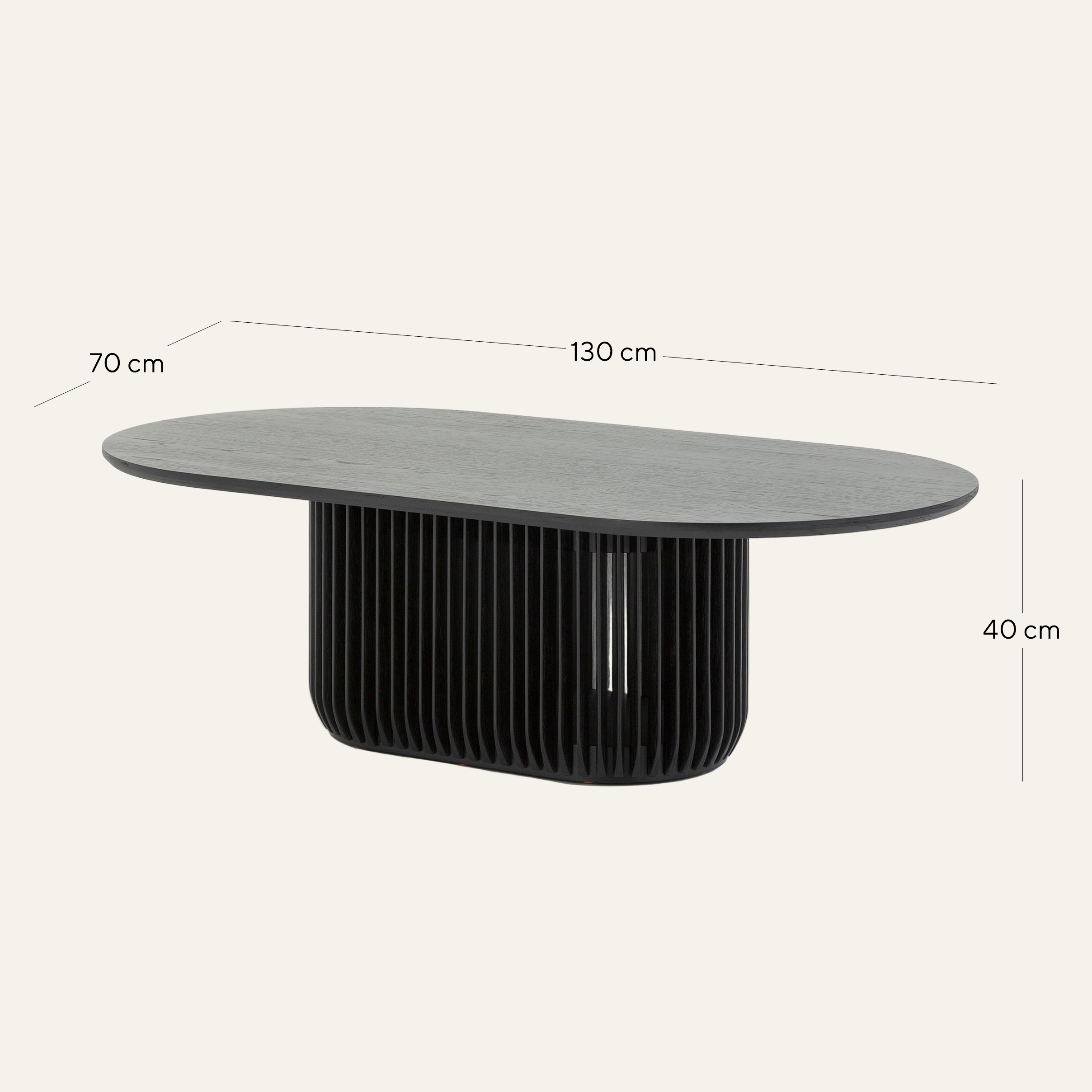 The Arvena 1.3m Oval Coffee Table in black stain brings together refined craftsmanship and striking design to elevate any living space. Its elongated oval silhouette softens the bold finish, creating a modern yet timeless presence that fits seamlessly in both contemporary and classic interiors.