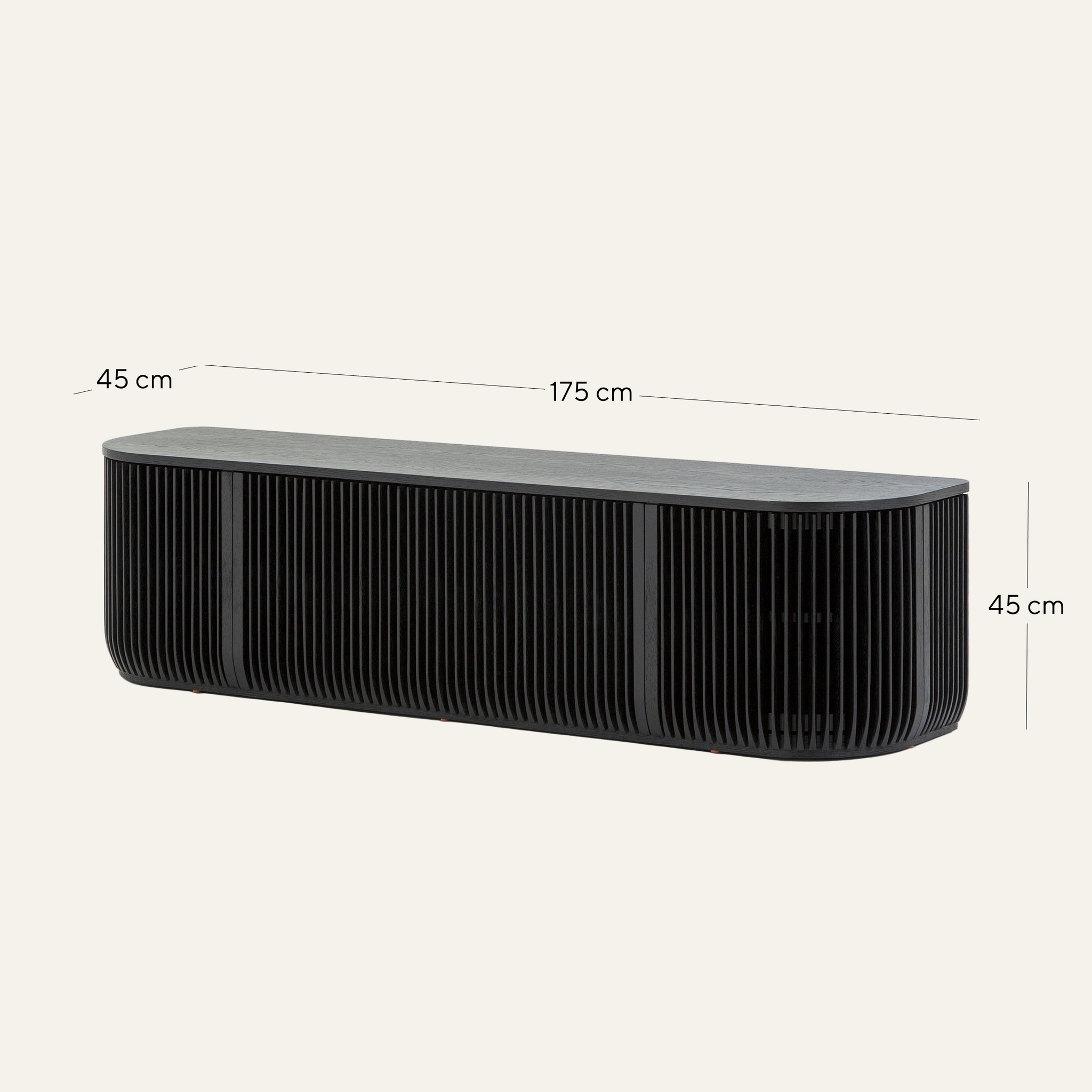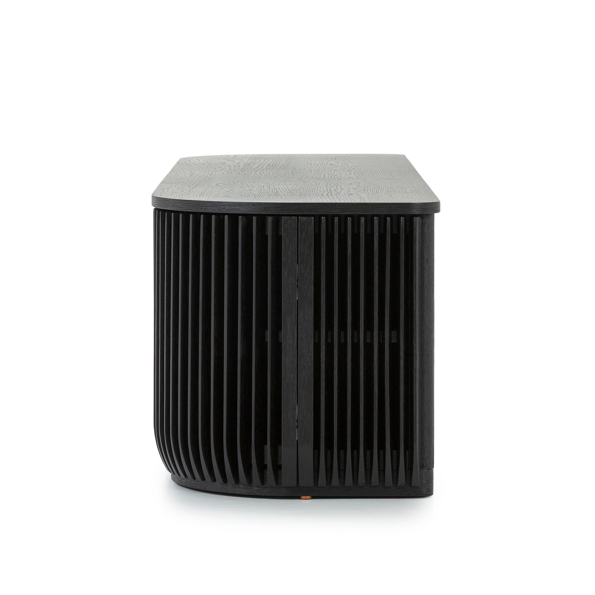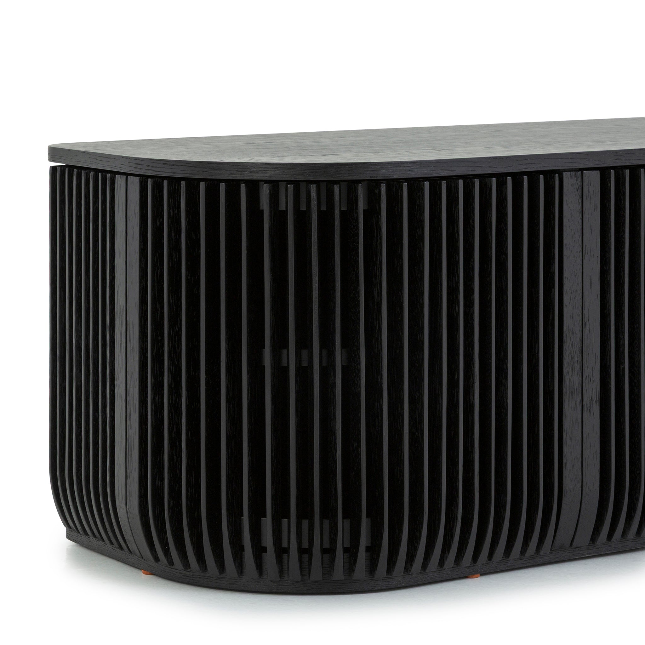 Emphasizing clean lines and architectural presence, the Arvena 1.75m TV Entertainment Unit in Black Stain features softened edges that balance its bold silhouette. This detail enhances its contemporary appeal while allowing it to blend effortlessly into diverse interiors.