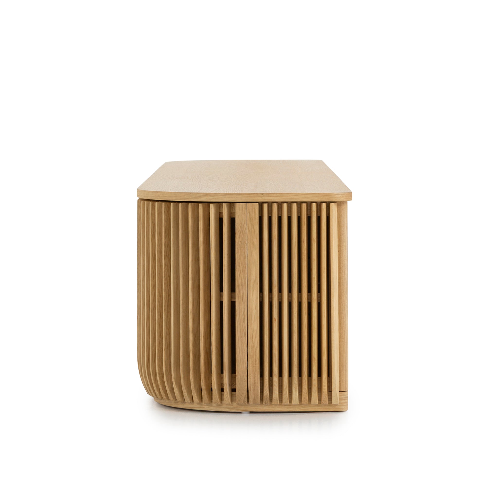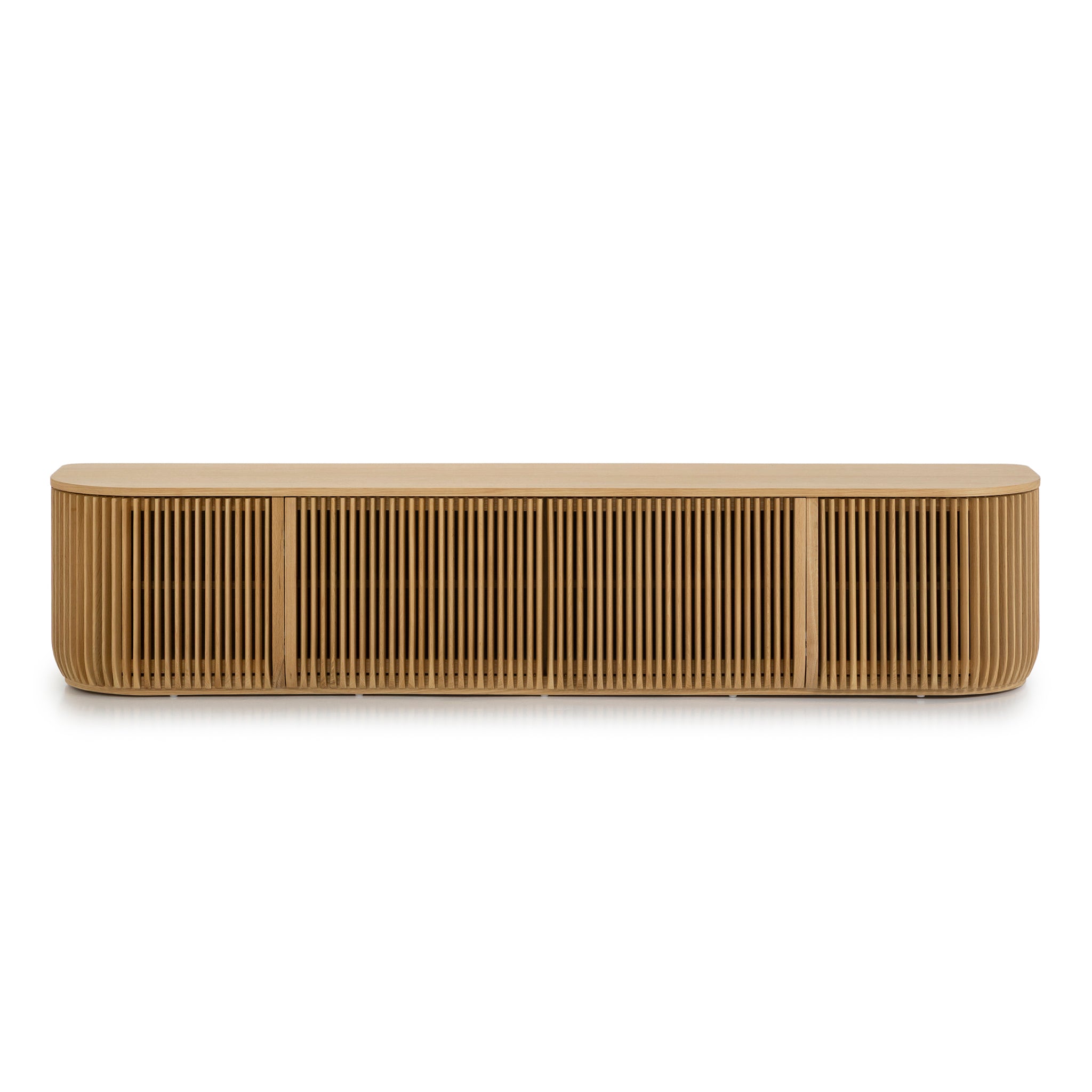 Blending aesthetics with function, the Arvena 2.15m TV Entertainment Unit in Natural offers generous storage behind smooth-sliding doors. Its thoughtful design keeps media equipment, consoles, and accessories neatly hidden, creating a clean and uncluttered living space.