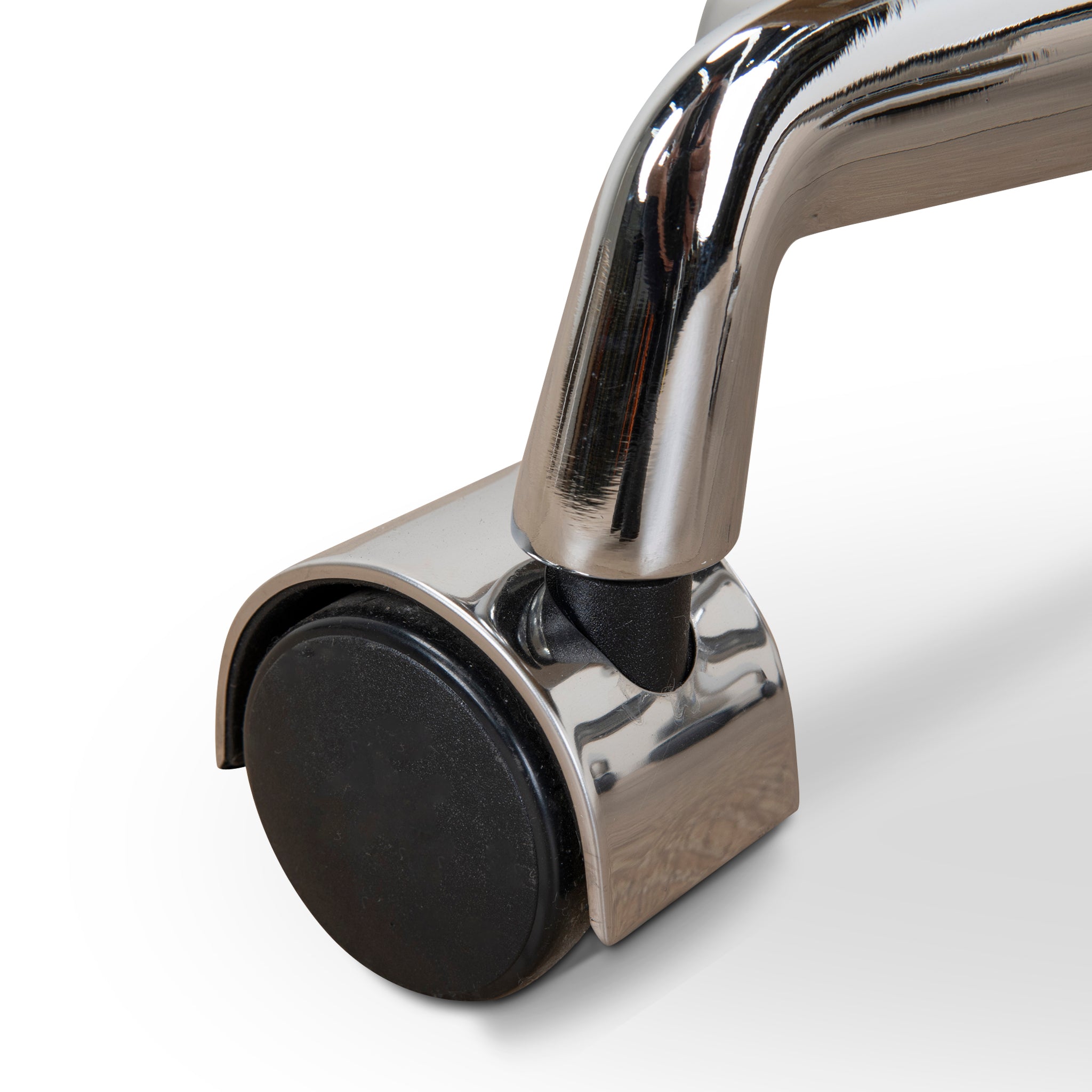 - Equipped with a chrome base and smooth-rolling caster wheels