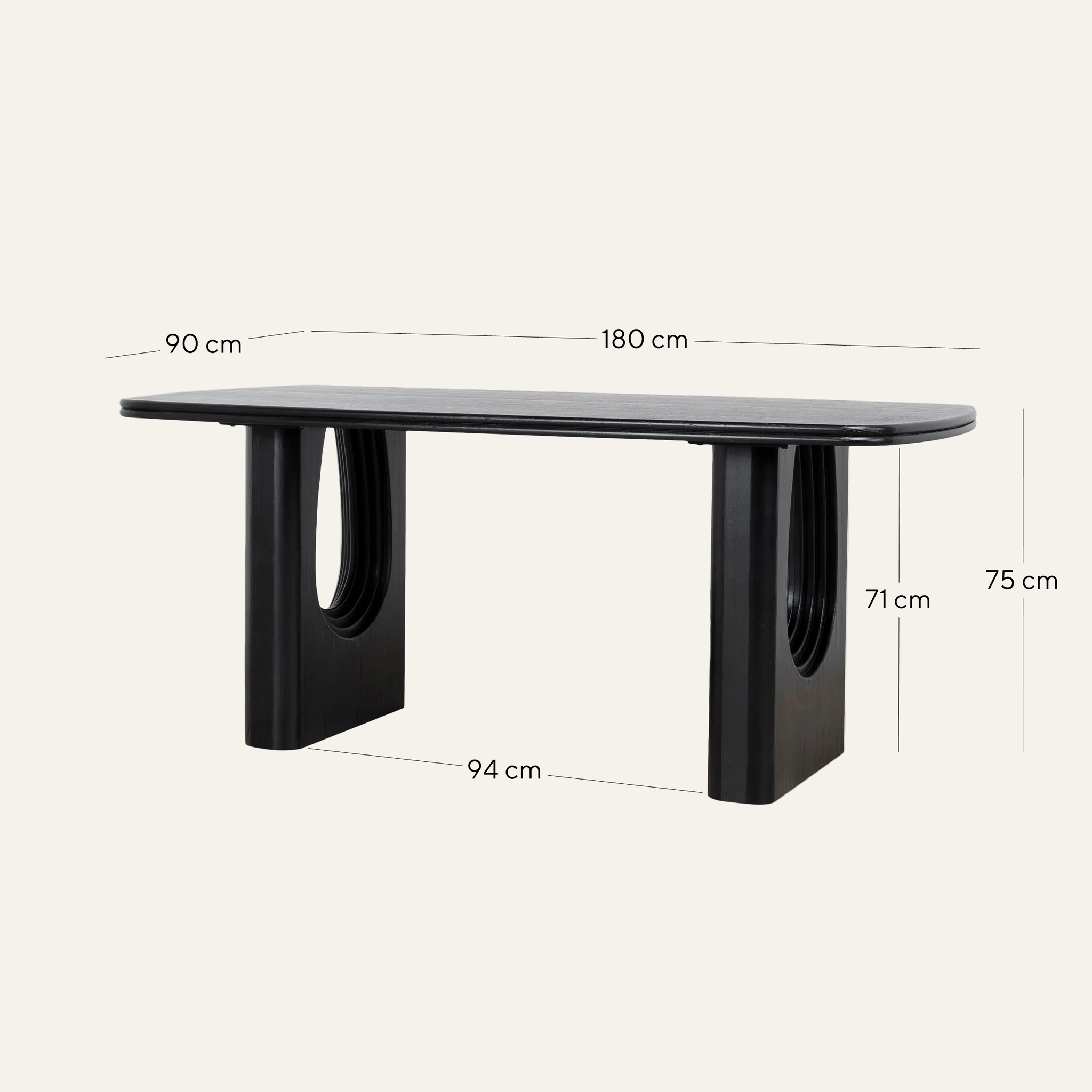 Rendered in a deep, dramatic tone, the Auralin 1.8m Elm Dining Table in Full Black takes on a bold architectural presence. The sculpted base gains striking definition, while the streamlined top keeps the overall look sharp and contemporary.