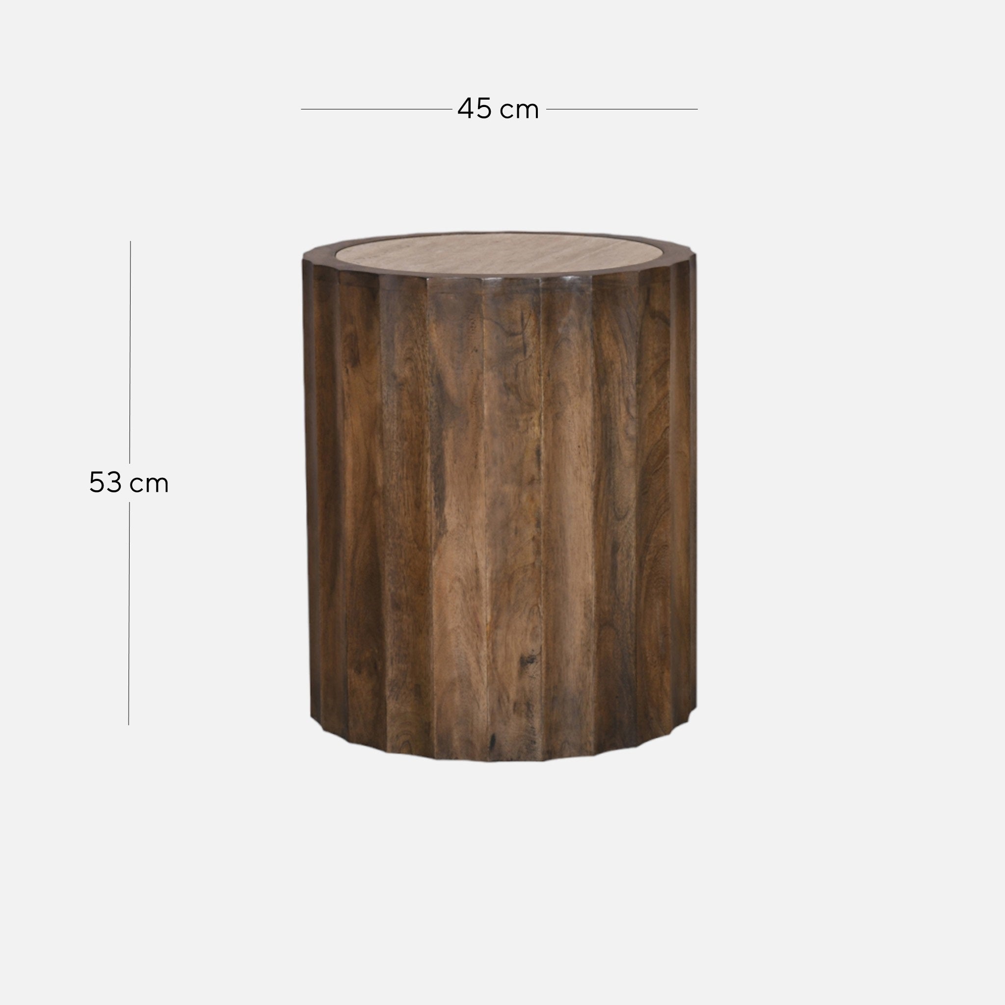 Avanti 45cm Travertine Top Round Side Table - Walnut