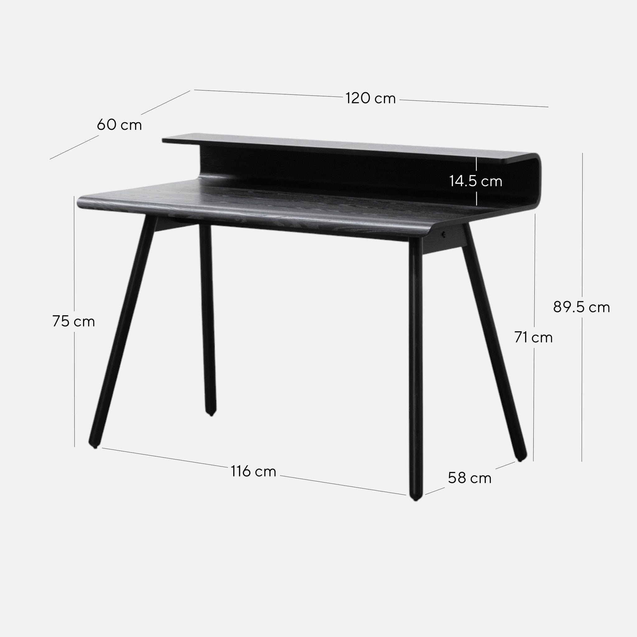 Overall: 120cm (W) x 60cm (D) x 89.5cm (H) Desk Top Height: 14.5cm Height from table base: 75cm Leg Height: 71cm Distance between Legs: 58-116cm