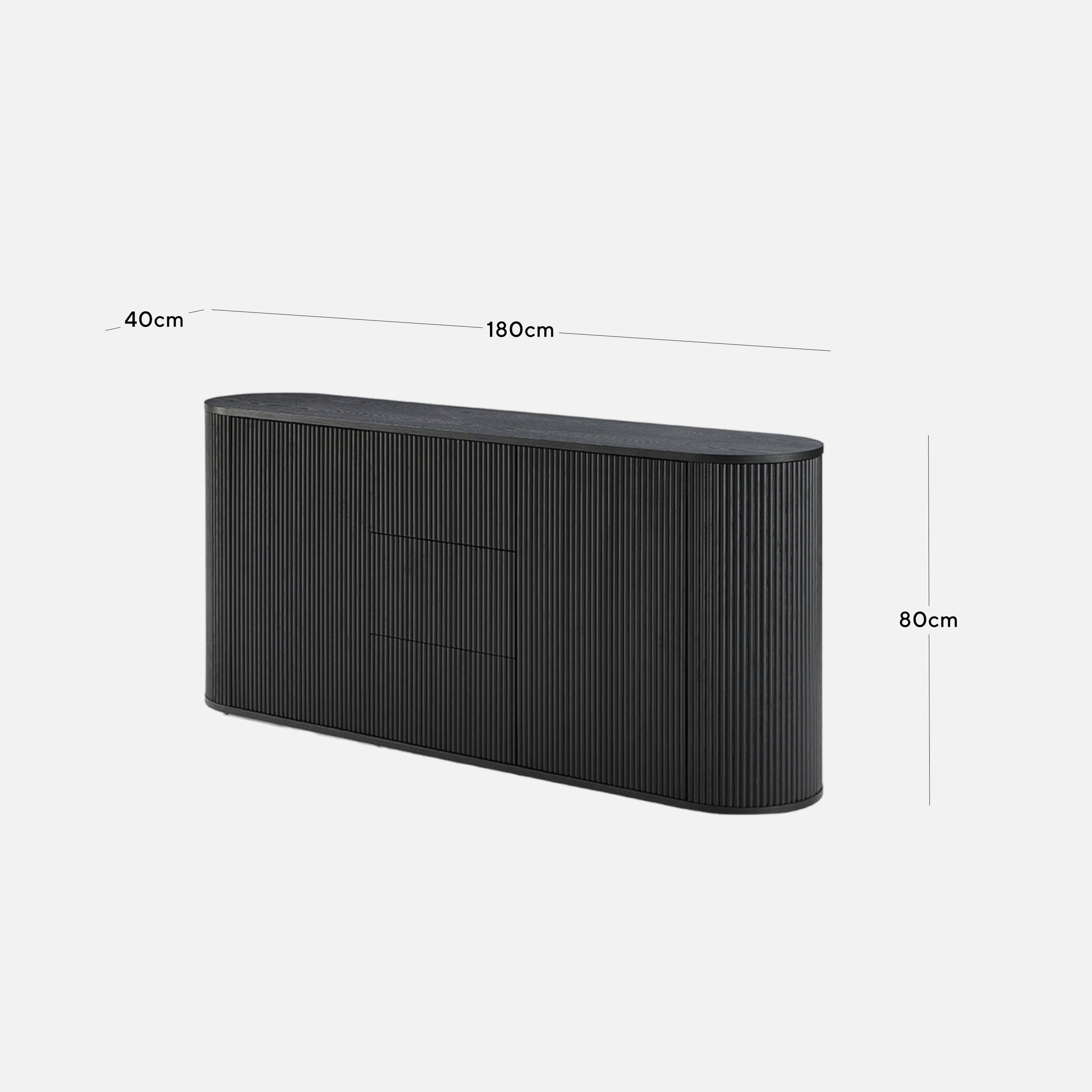 This sleek black sideboard unit from Bellfield comes with a 1.8m length, perfect for larger spaces. Store items of all shapes and sizes in the ample compartments and drawers, while its modern design adds a stylish touch to any living space. Choose from our famous range of black buffets available online.
