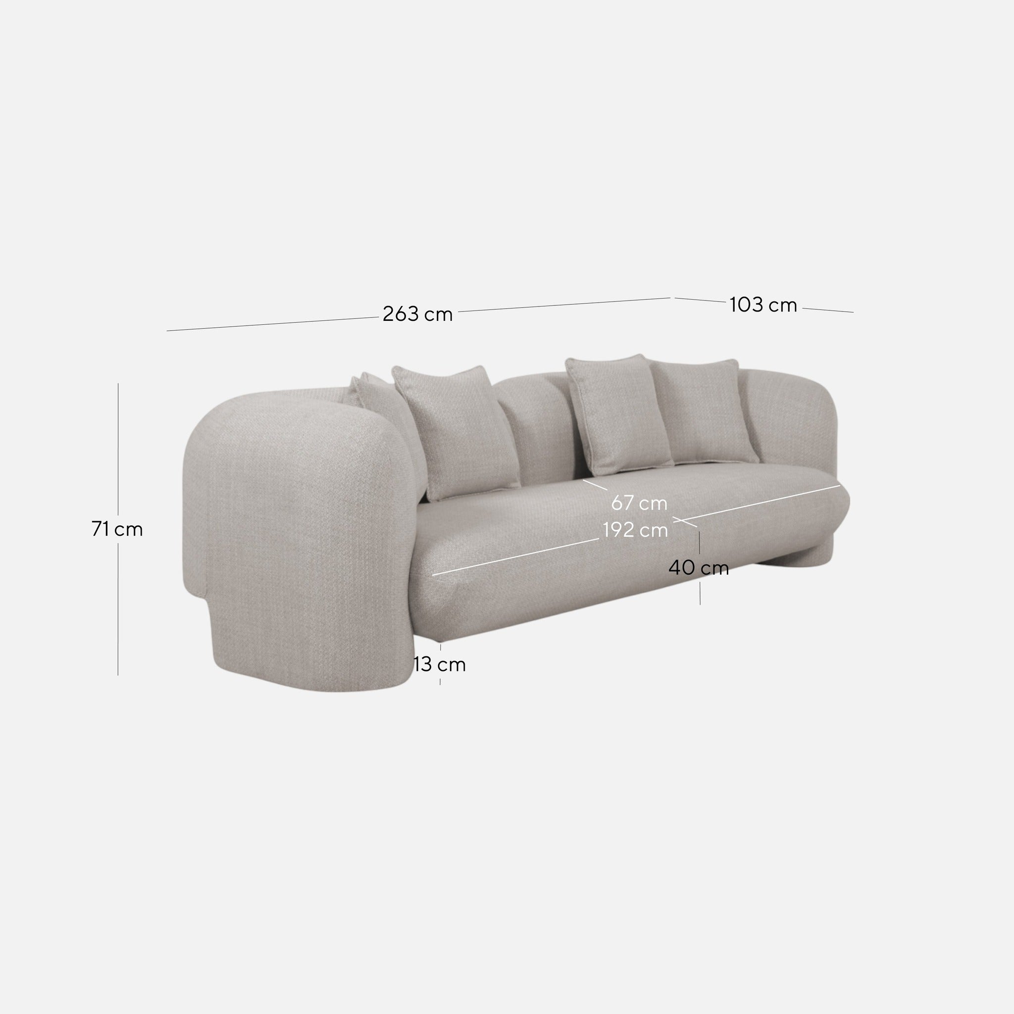 Overall: 263cm (W) x 103cm (D) x 71cm (H) Seat: 192cm (W) x 67cm (D) x 40cm (H) Base Height: 13cm