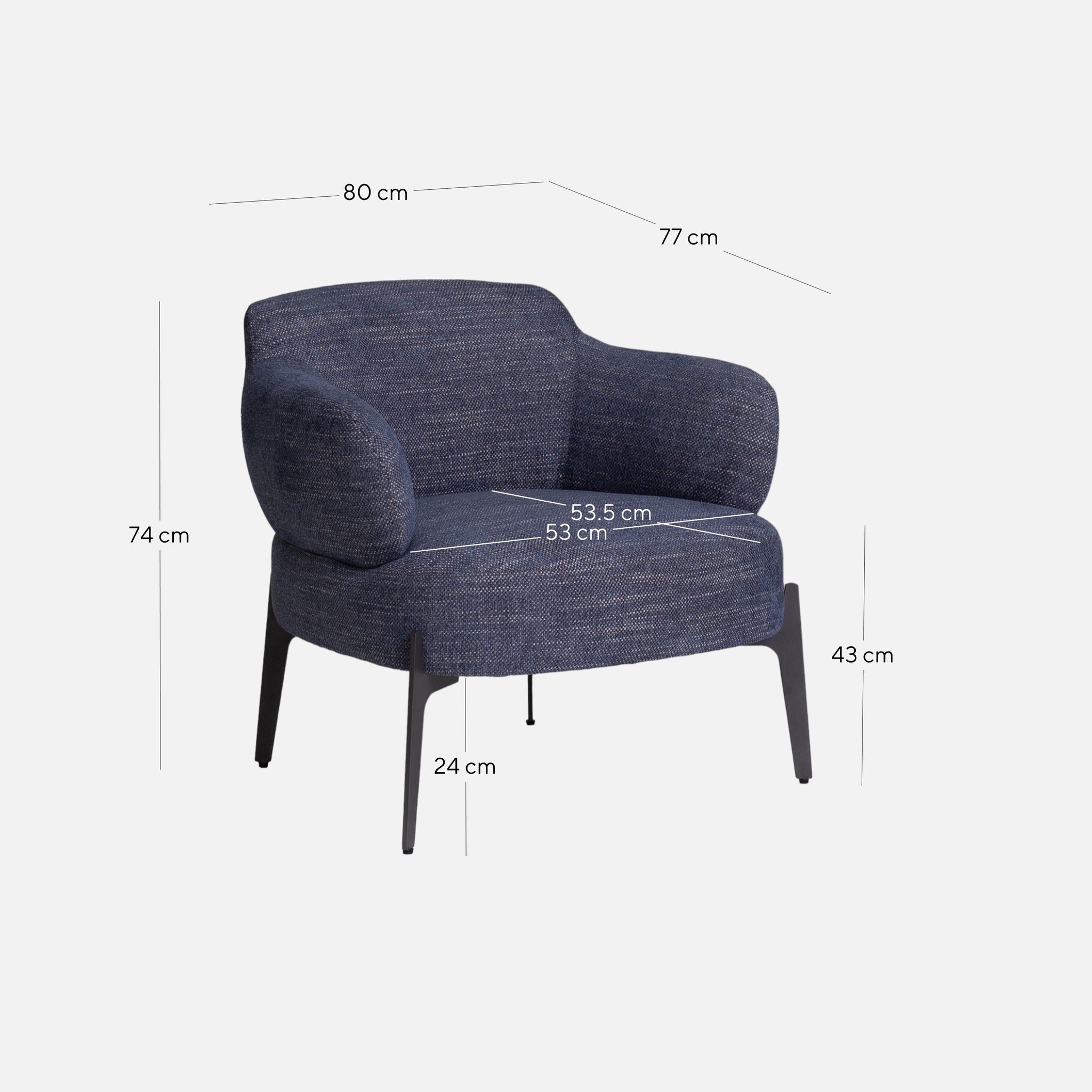 The Berit Armchair is a true testament to contemporary design, featuring a harmonious blend of soft curves and angular lines. The chair's rounded back and armrests provide a cozy, enveloping feel, while the sleek, angled legs add a touch of modern sophistication.