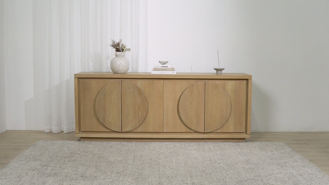 Combining sophisticated form with ample function, Bonnie 2m Buffet Unit - Dusty Oak offers a stylish and easy solution to your organisational and storage needs. The superior craftsmanship featuring beautiful half-moon handles and a wide durable body, offers a stable and timeless design, to last in the home. Check our different range of natural buffets unit.