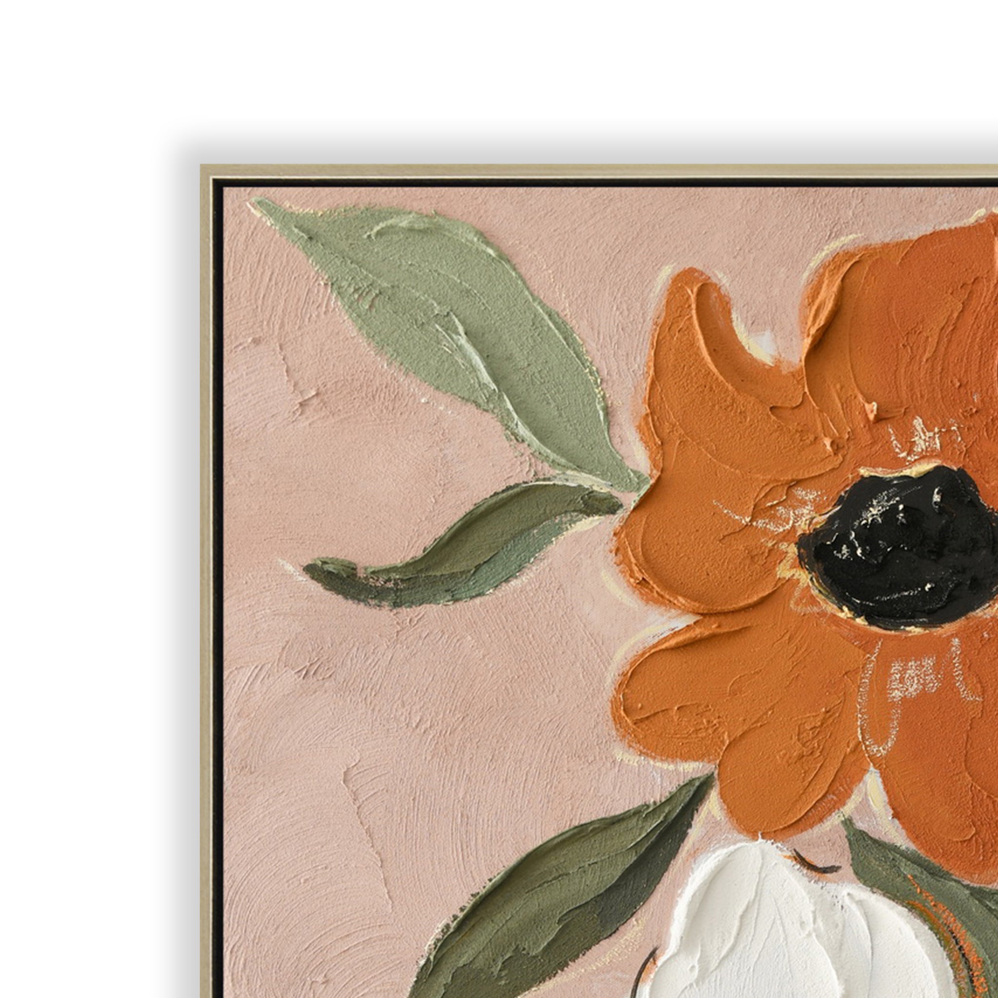 Celebrating colour and texture with expressive blooms in warm terracotta, ivory, and blue, Botaniq Charm 80 x 100cm Framed Canvas in Natural features layered acrylic strokes that add depth and movement. Its lively, hand-painted look brings character and charm to any interior.