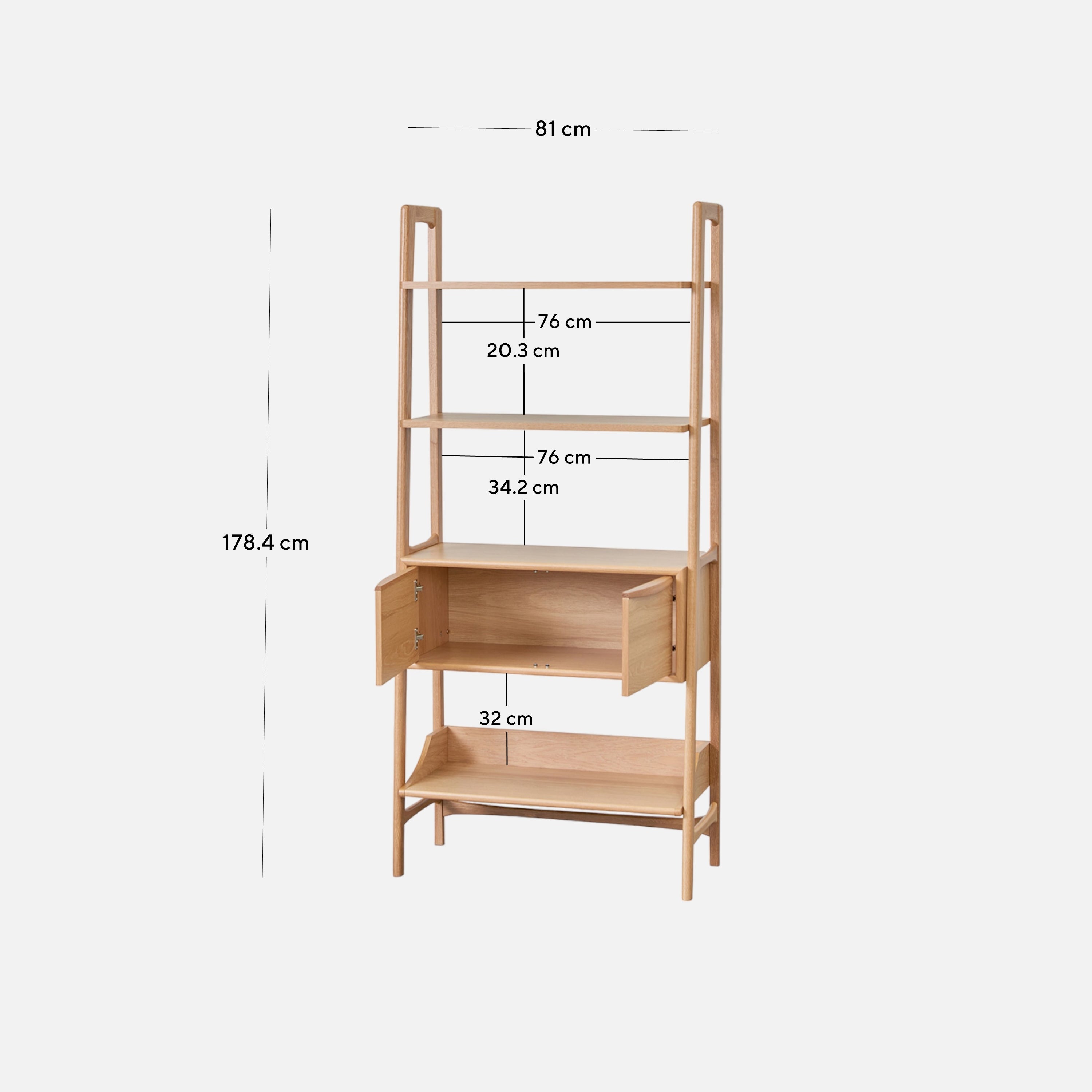 Overall: 81cm (W) x 38cm (D) x 178.4 cm (H) Top Shelf: 76cm (W) x 35.8cm (D) x 20.3cm (H) 2nd Shelf: 76cm (W) x 35.8cm (D) x 34.2cm (H) Bottom Shelf: 37.7cm (W) x 32cm (H)