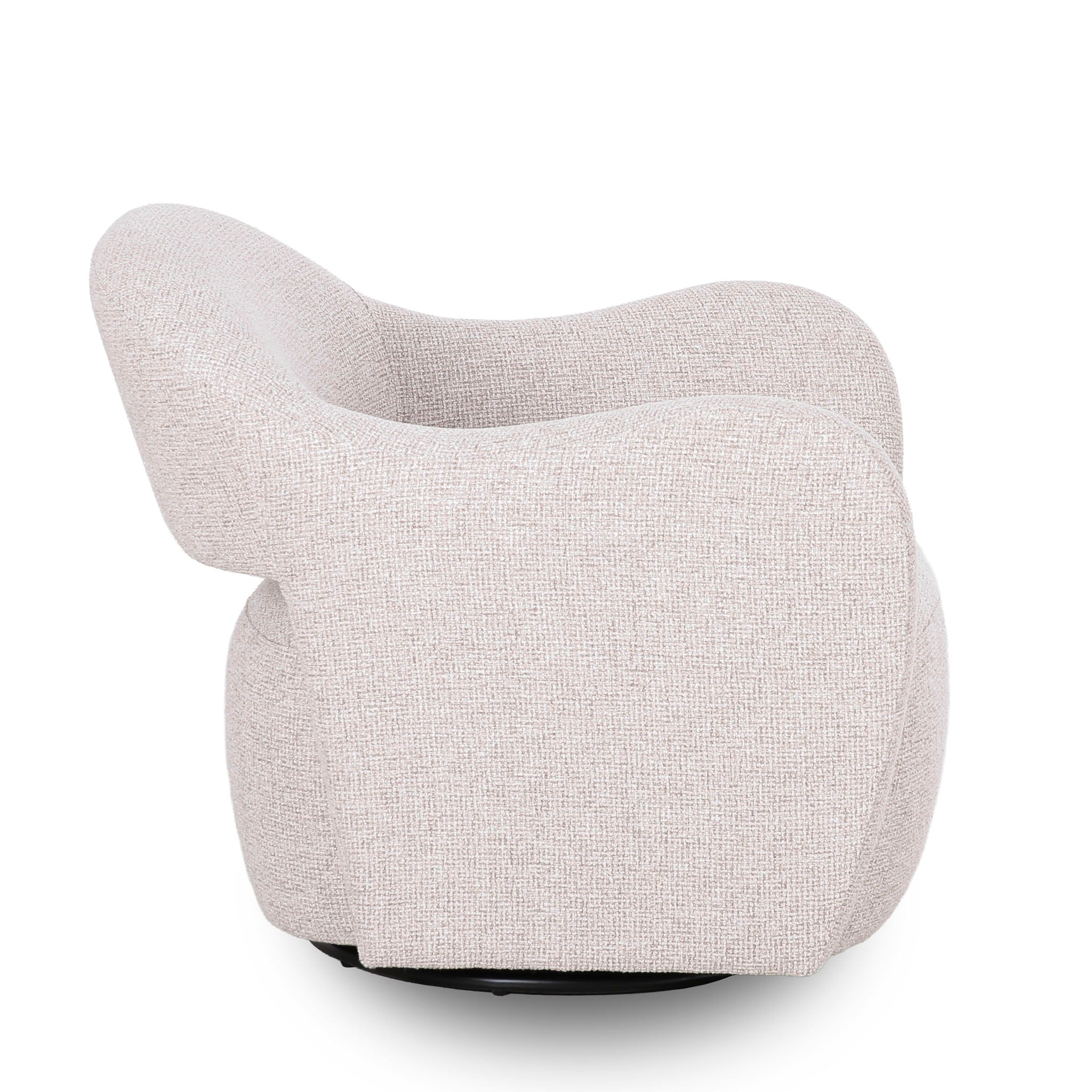- Sculptural wraparound backrest with a soft, curved form
