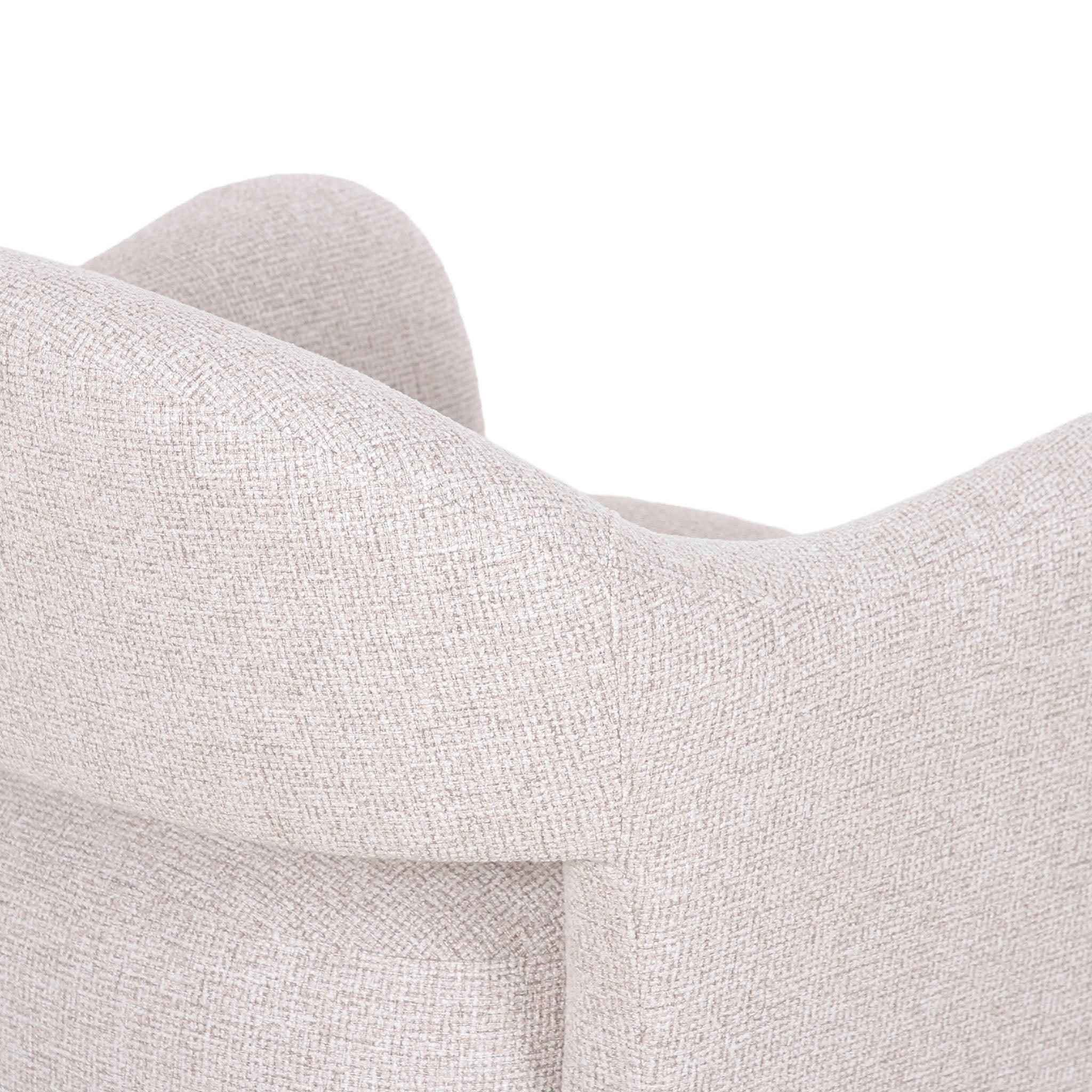 - Upholstered in Verona light sand fabric