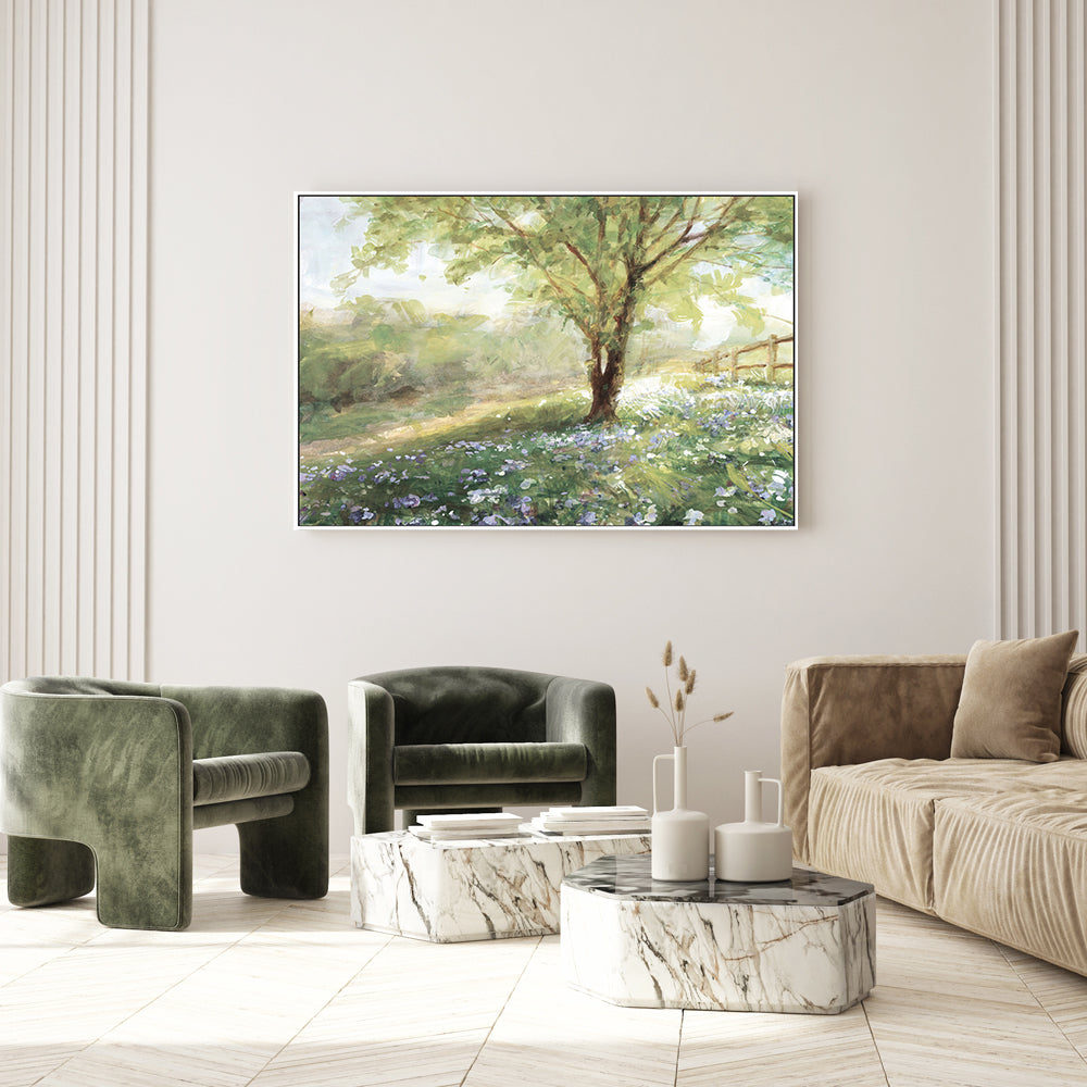 Get lost in the mesmerizing beauty of Bright Violet Field by Danhui Nai. This stunning artwork captures a lively violet field, bathed in golden light. The playful brush strokes and vibrant hues make for a charming addition to any space.