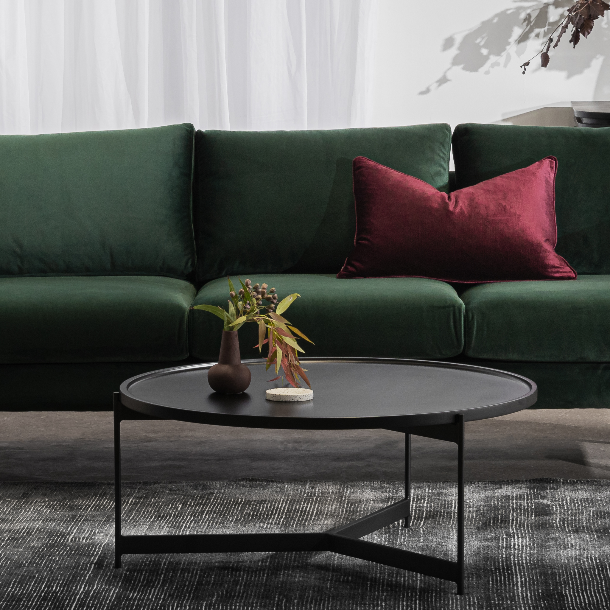 Pull the living room together with the practical and sleek Burton 90cm Round Coffee Table – Matte Black, an effortless modern design for the home. The smooth round lines are balanced with the angles of the minimalist base, giving your decor a contemporary cohesive feel.