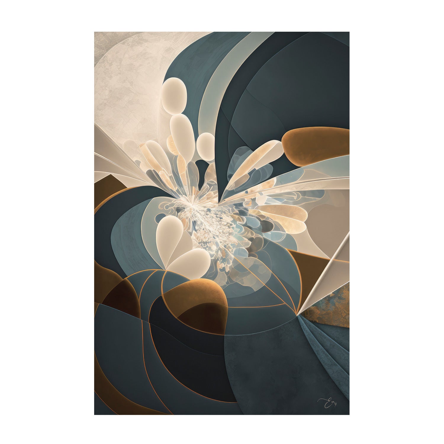 "Cadence Style B" by Bella Eve, printed and framed by Gioia Wall Art, features an abstract design with flowing forms in earthy and teal tones. The intricate layering and soft contrasts evoke depth and elegance. Perfect for modern or minimalist spaces.