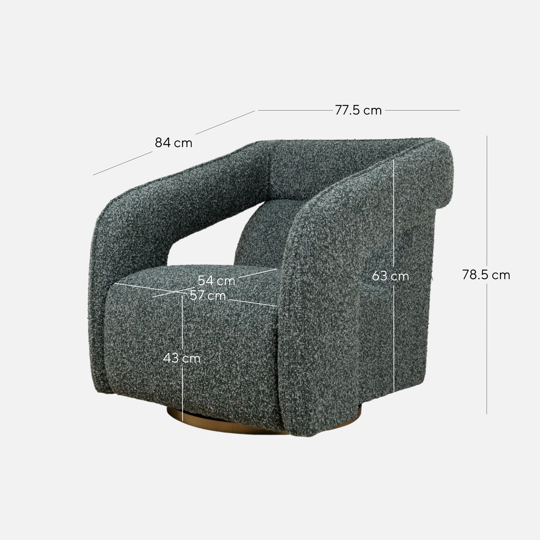 Overall: 77.5cm (W) x 84cm (D) x 78.5cm (H) Seat: 57cm (W) x 54cm (D) x 43cm (H) Arm Height: 63cm Leg Height: 5cm