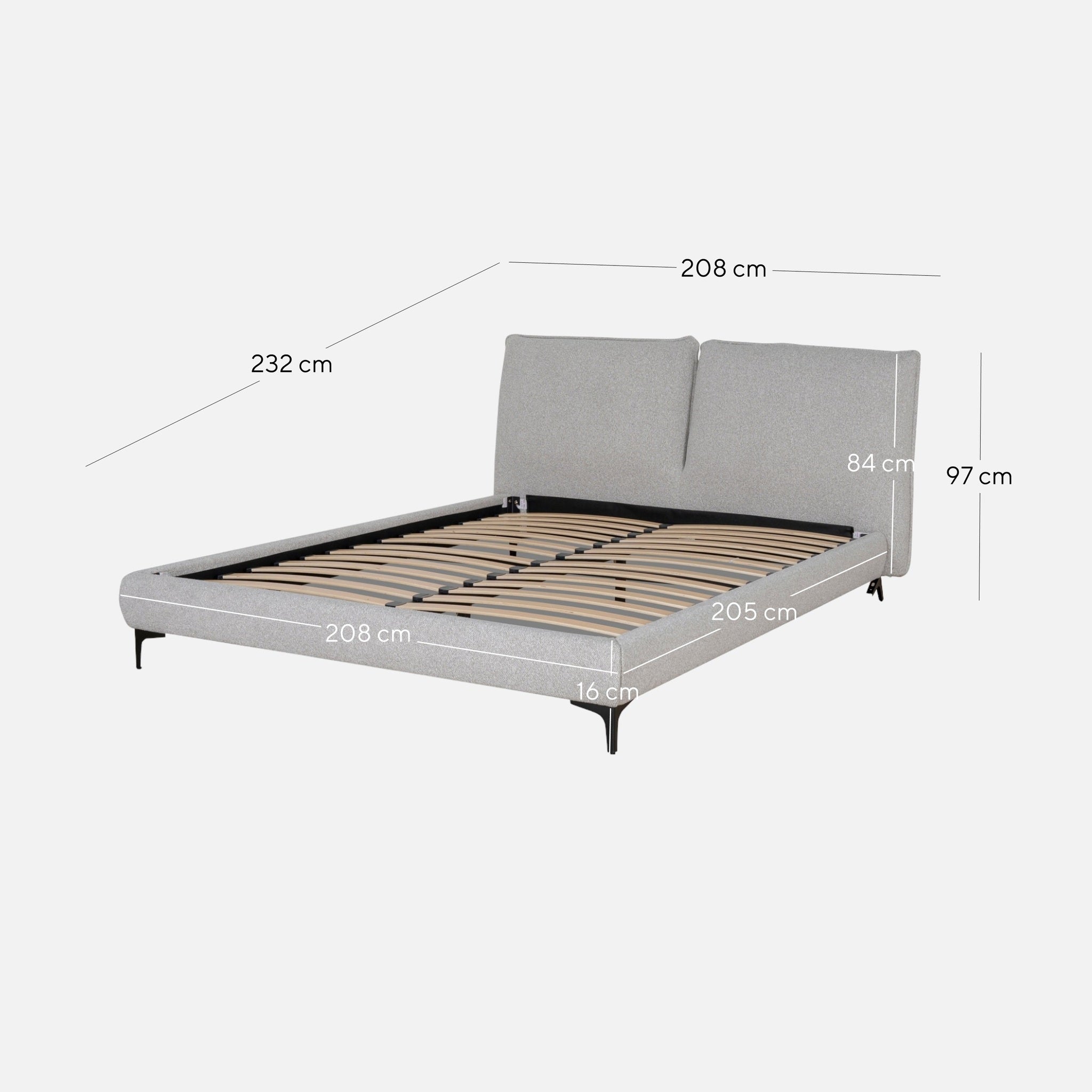 Overall: 208cm (W) x 232cm (D) x 97cm (H) Bedhead: 208cm (W) x 20cm (D) x 84cm (H) Sideboard: 205cm (W) x 6.5cm (D) x 16cm (H) Footboard: 208cm (W) x 6.5cm (D) x 16cm (H)