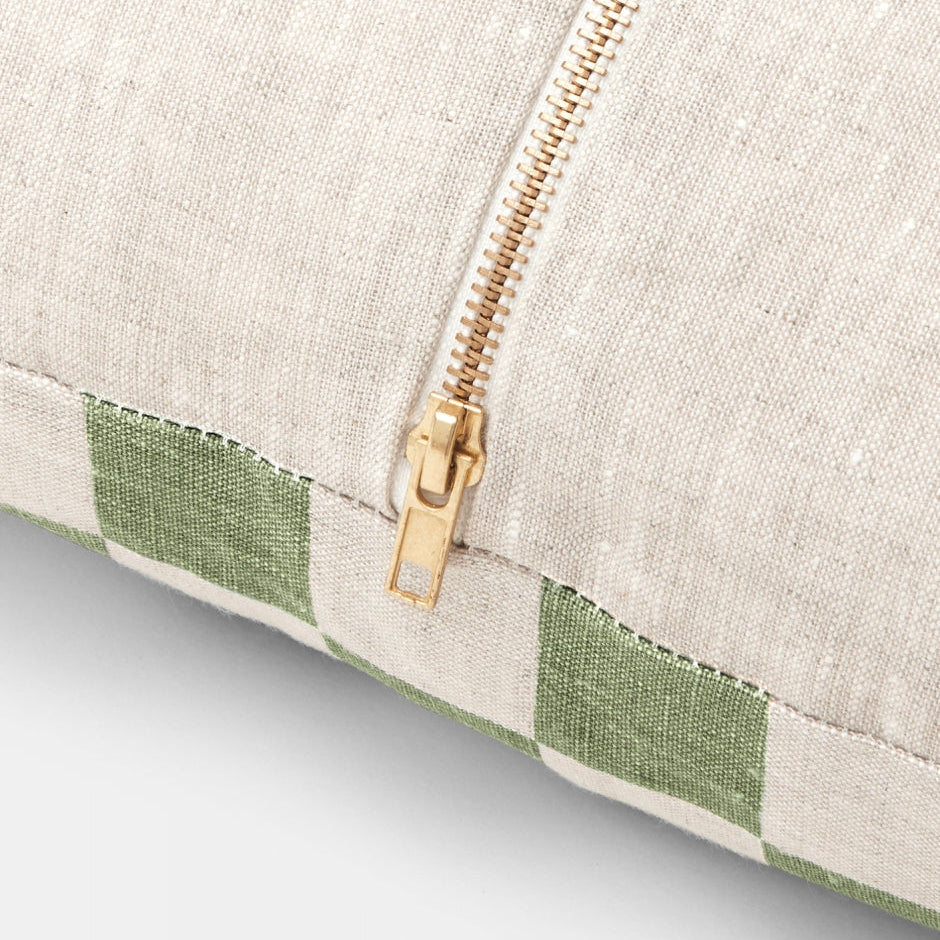 Bold sage checks meet cosy comfort in this 50cm square cushion. Feather-filled for that perfect sink-in feel, topped with a cheeky brass zip. Your sofa's new best friend.
