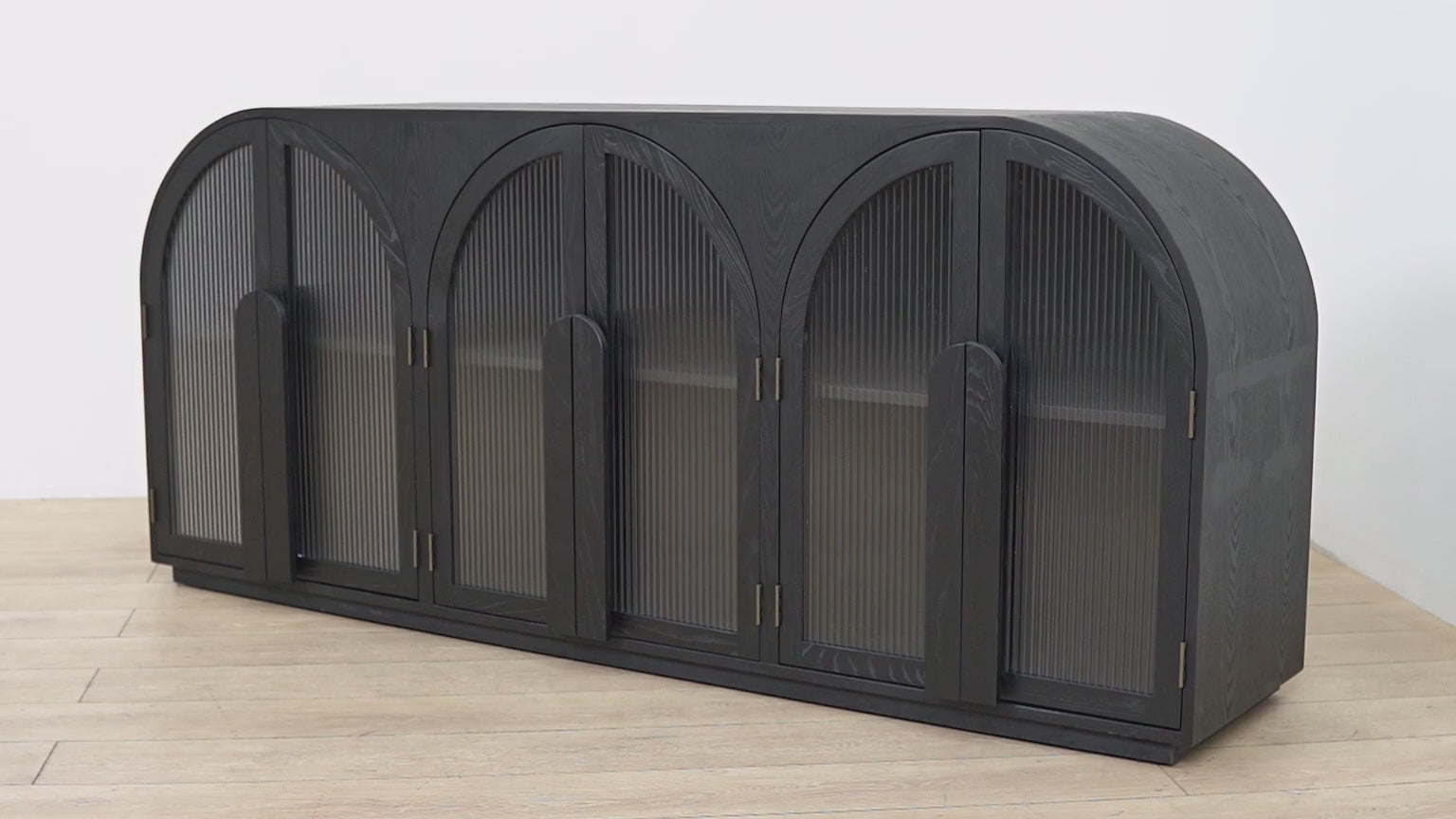 - Distinctive arched panels on the cabinet doors