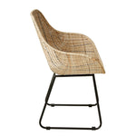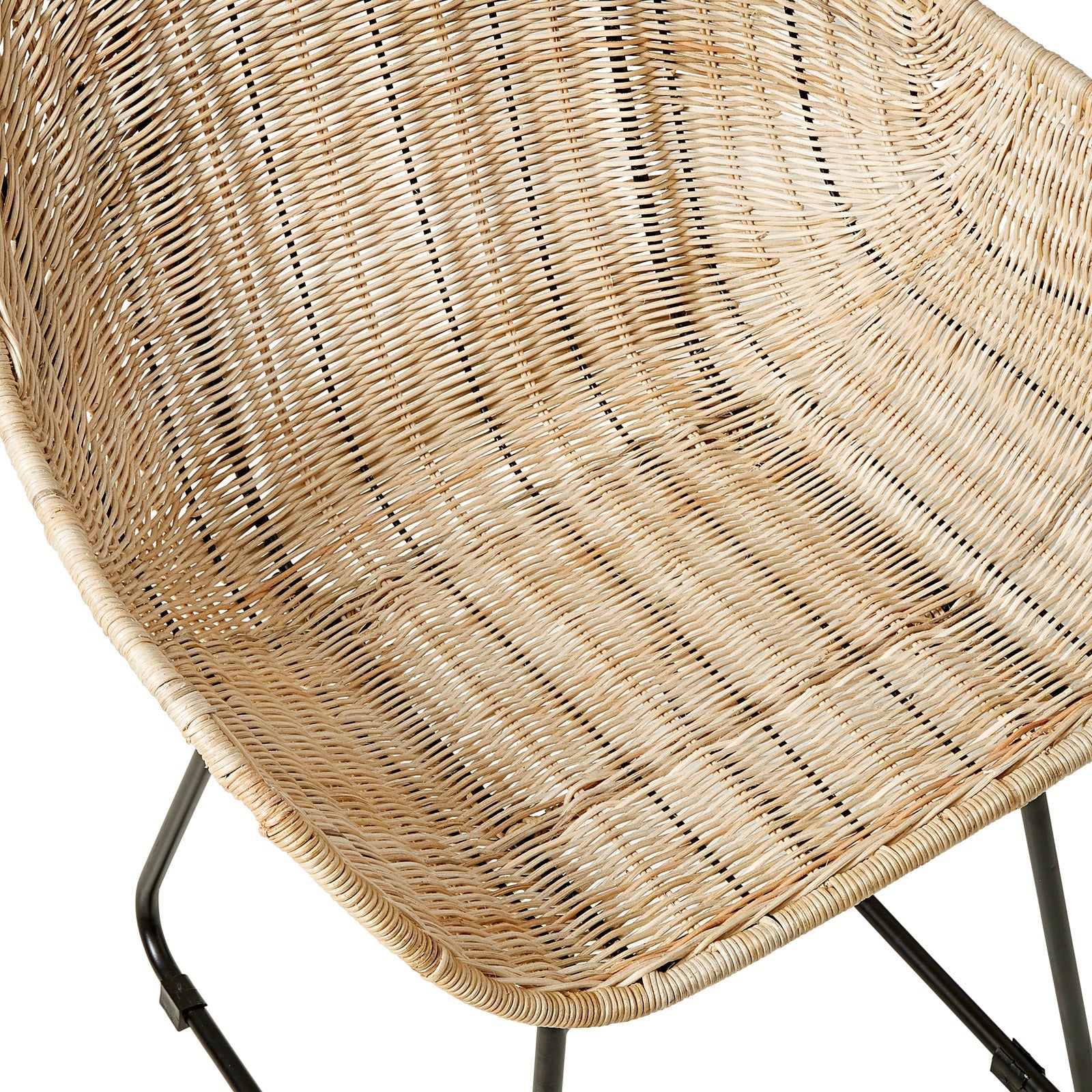 - Meticulously weaved rattan seat with integrated armrests for a cohesive look