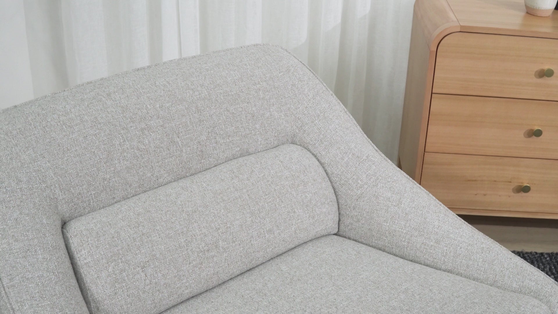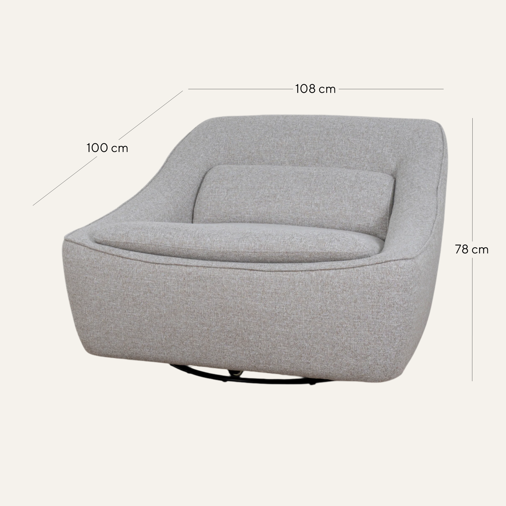 - Rounded silhouette with softly sloped armrests and backrest