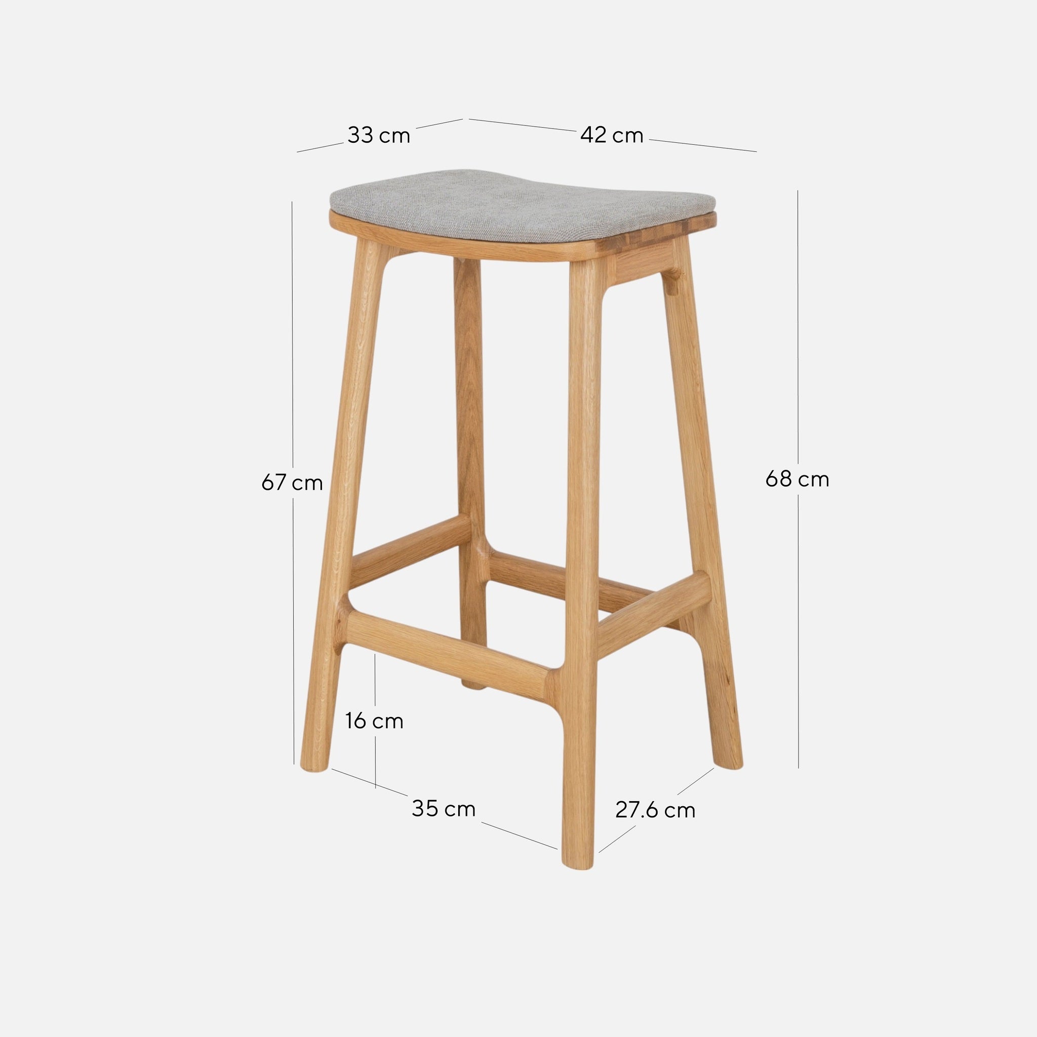Overall: 42cm (W) x 33cm (D) x 68cm (H) Seat Height: 67cm Leg Height: 67cm Distance between Legs (Front Side): 35cm Distance between Legs (Side): 27.6cm Footrest Thickness: 4cm Footrest to Base: 16cm