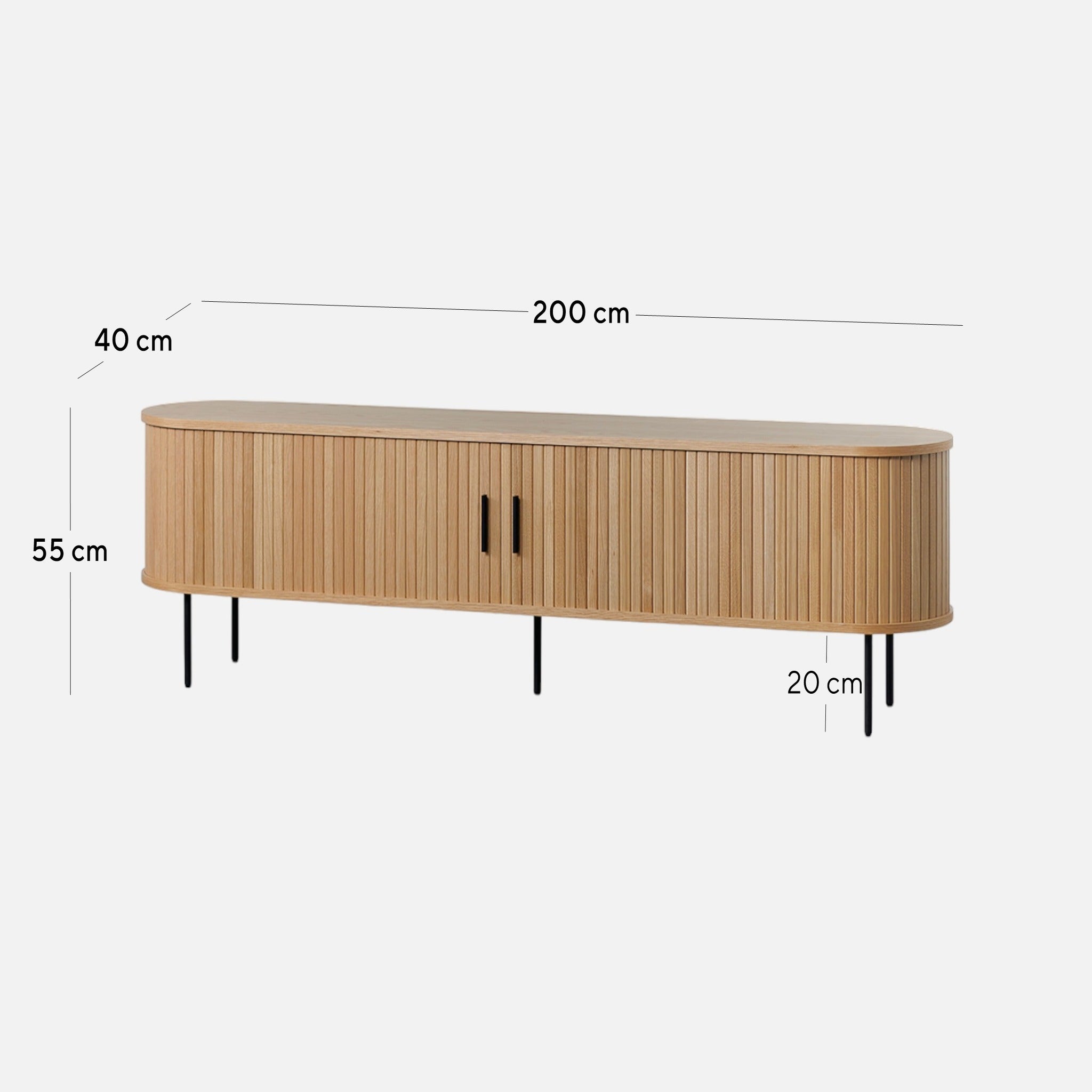 Overall: 200cm (W) x 40cm (D) x 55cm (H) Leg Height: 20cm