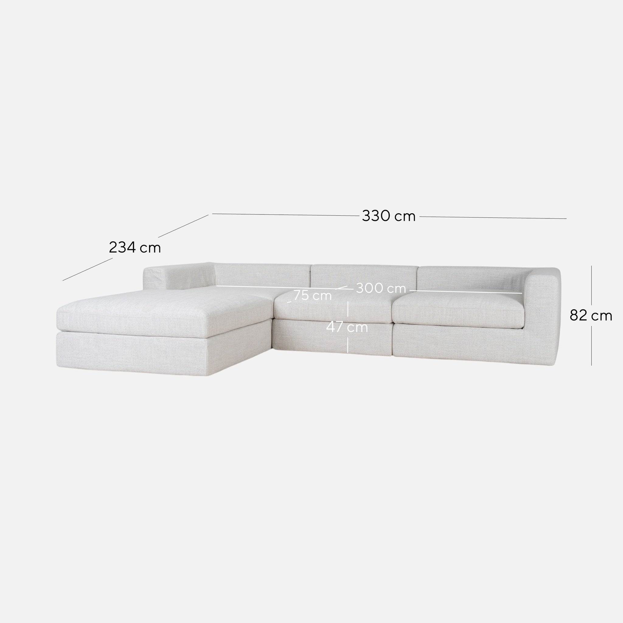 Daniyal 3 Seater Chaise Sofa - Pebble Beige