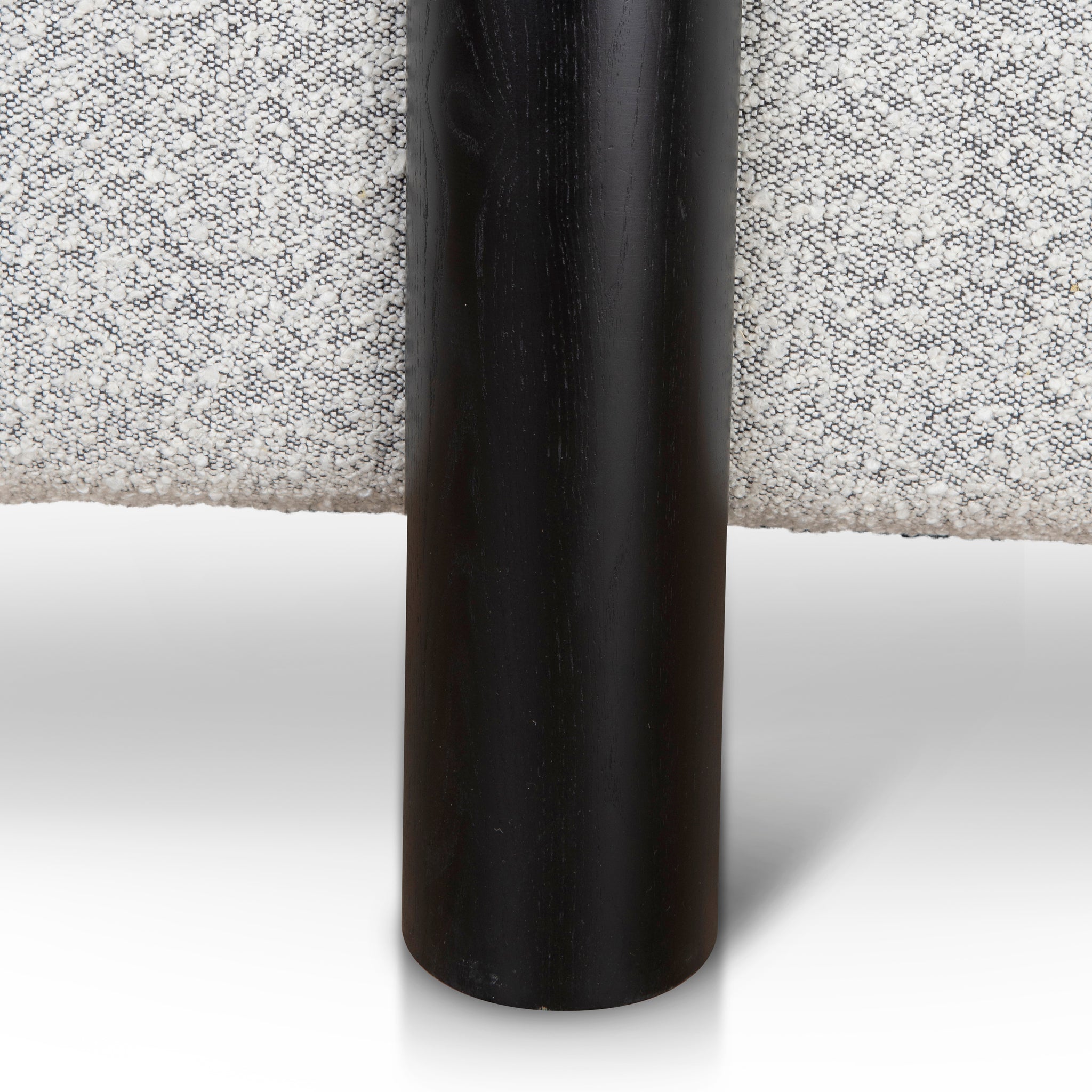 - Three sleek cylindrical black ash wood legs
