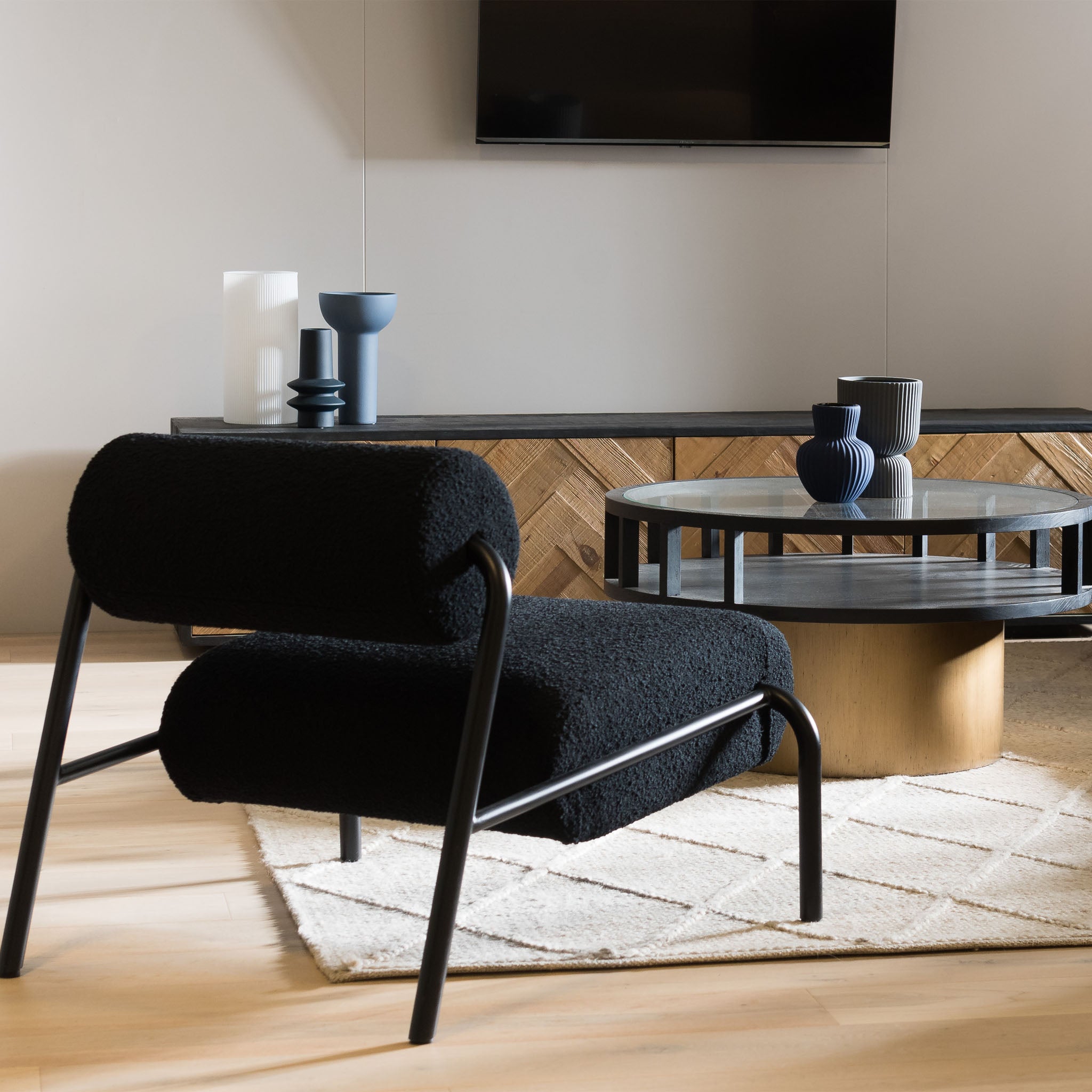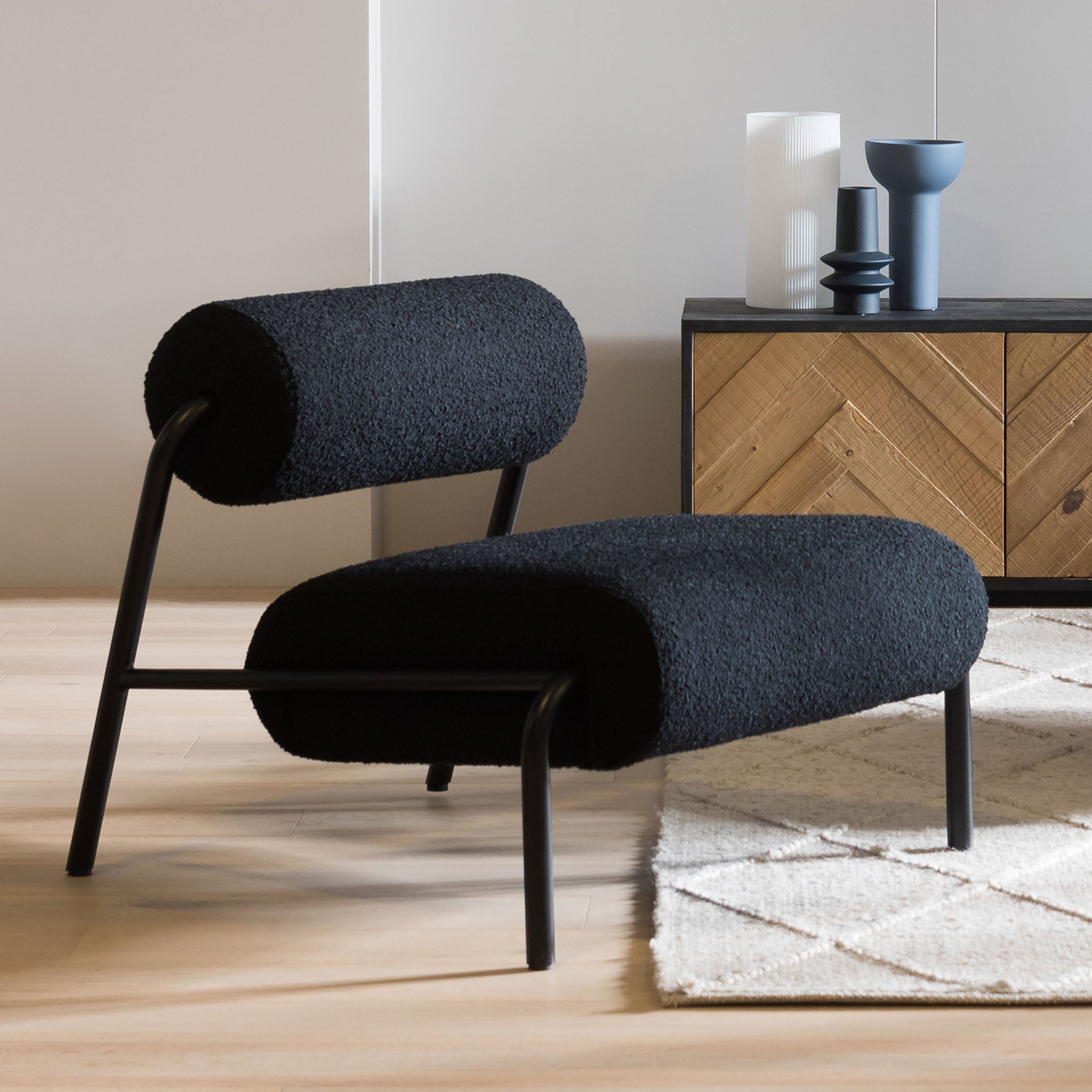Sink into the deep comfort of this Delacruz Lounge Chair - Black Boucle. It is time to lose yourself in the admiring beauty and sleek design of this post-modernist minimalistic piece of art.