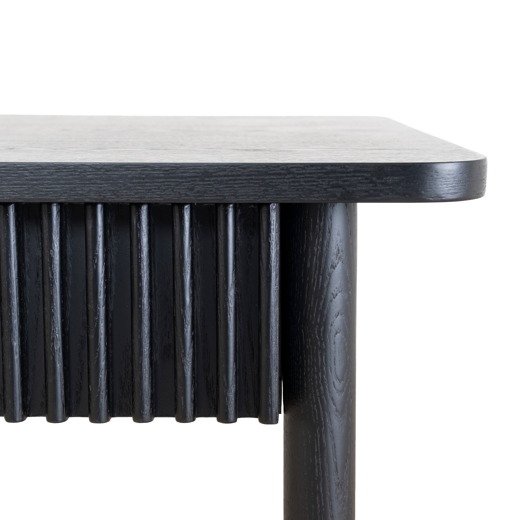 - Round solid black wood legs with a seamless finish