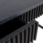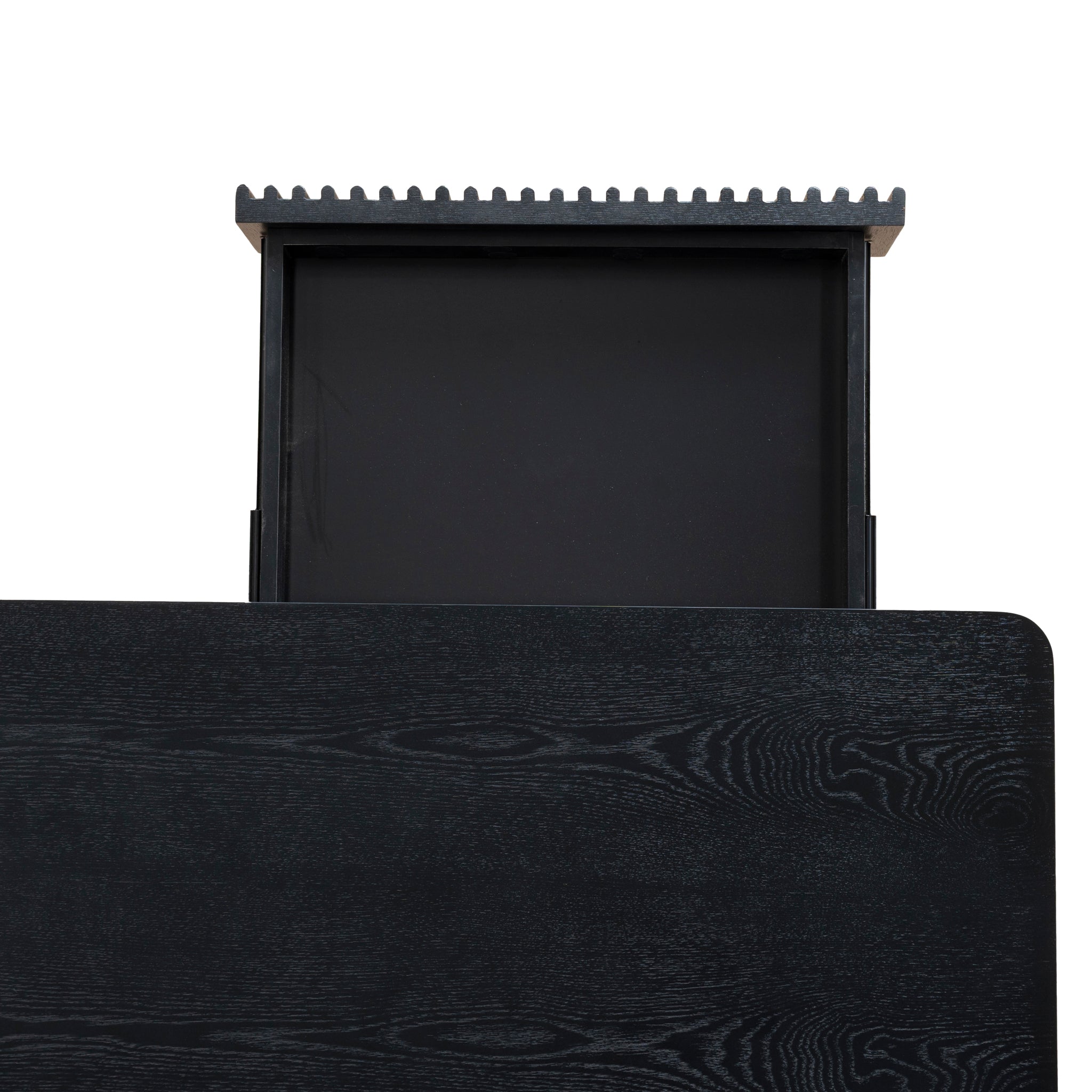 - Solid wood drawer panel with slat pattern side