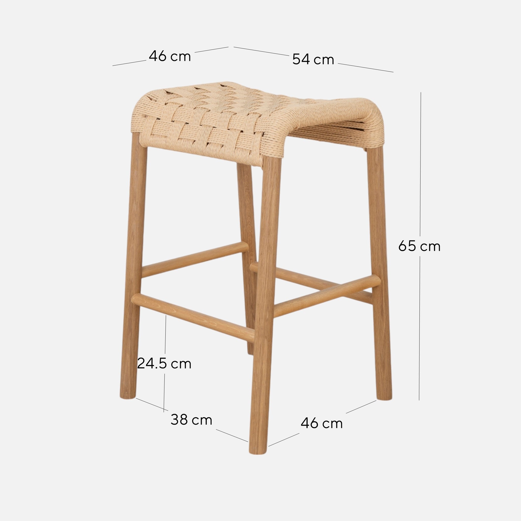 Discover the ideal blend of comfort and style for your modern home with the Easton 65cm Bar Stool in Natural. Crafted with a medium-firm woven cord seat, each Easton Bar Stool offers exceptional durability and support. The sleek timber legs enhance the stool's sophisticated appeal, effortlessly elevating the elegance of any space.